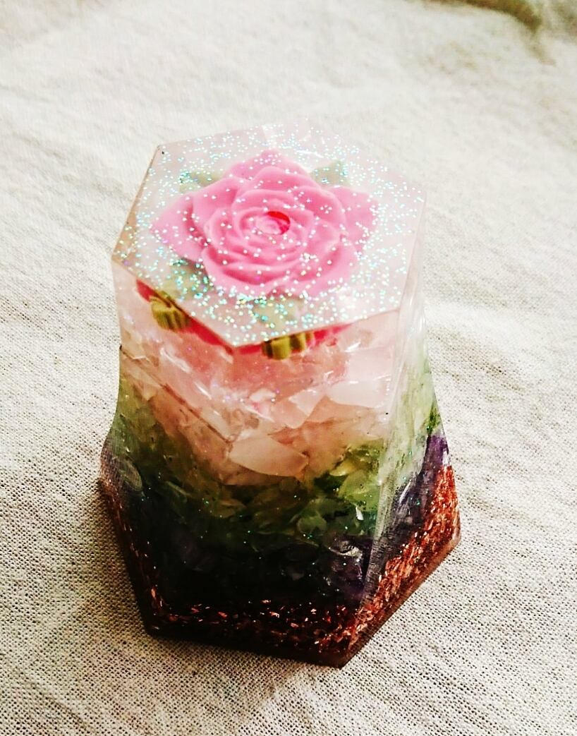 (ローズクォーツ、アメジスト、プレナイトを入れています)