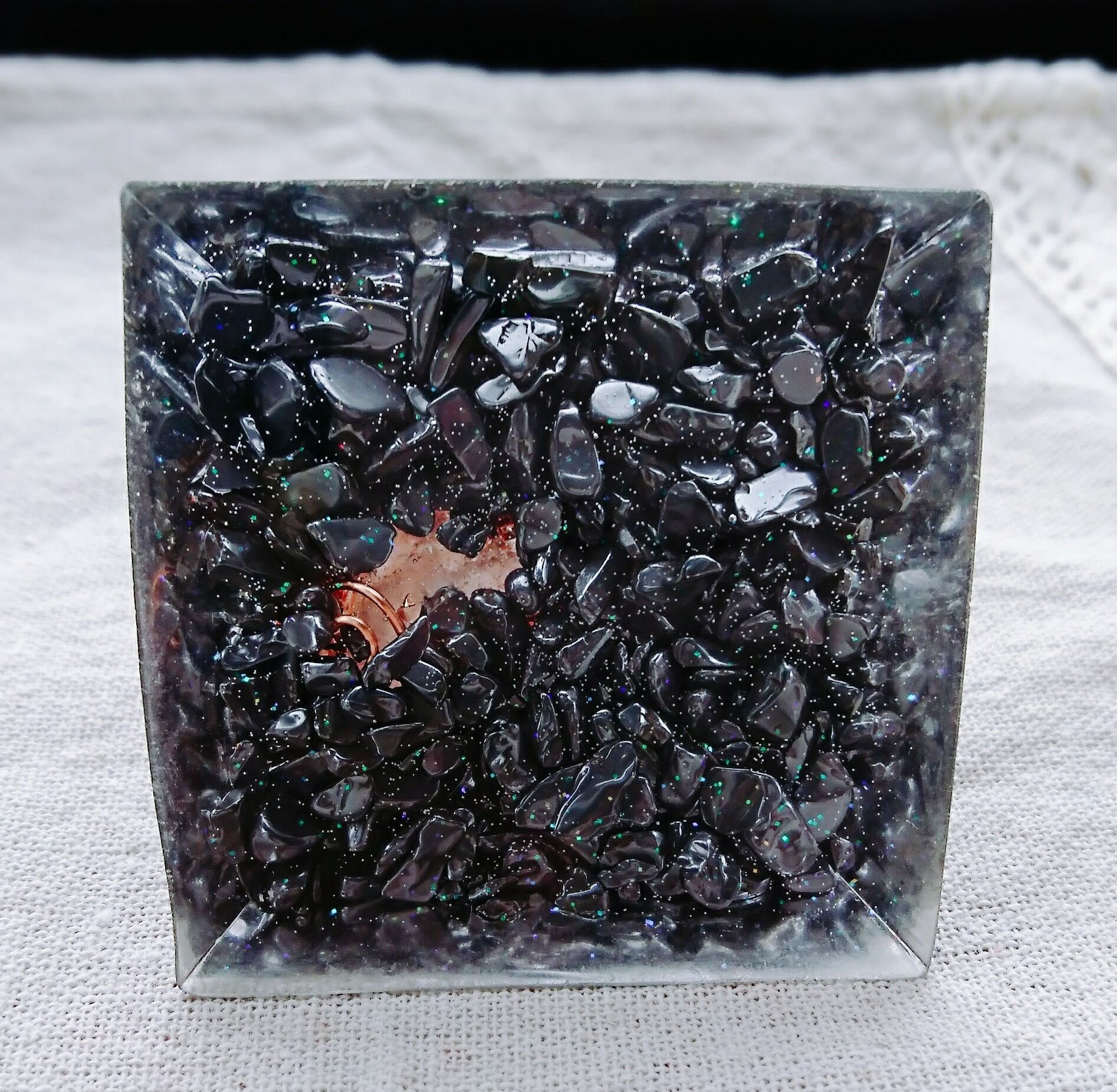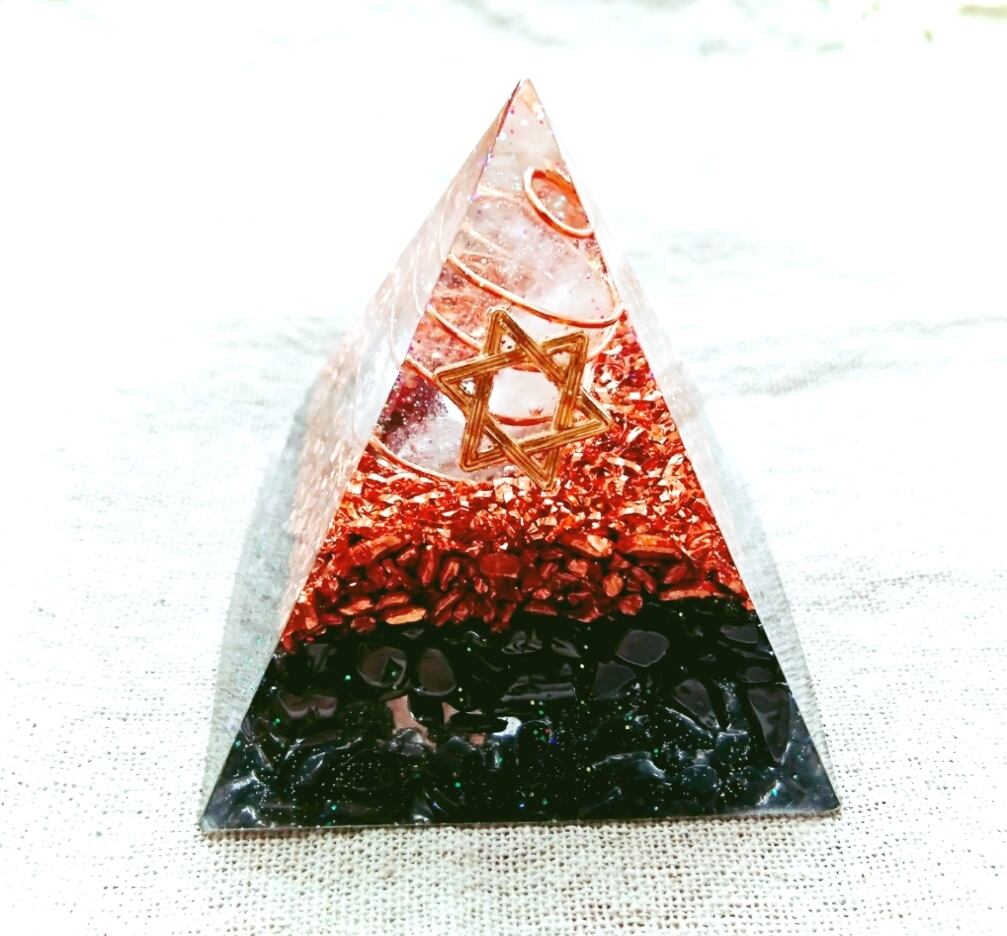 水晶、銅、樹脂の3つを組み合わせて作っています。