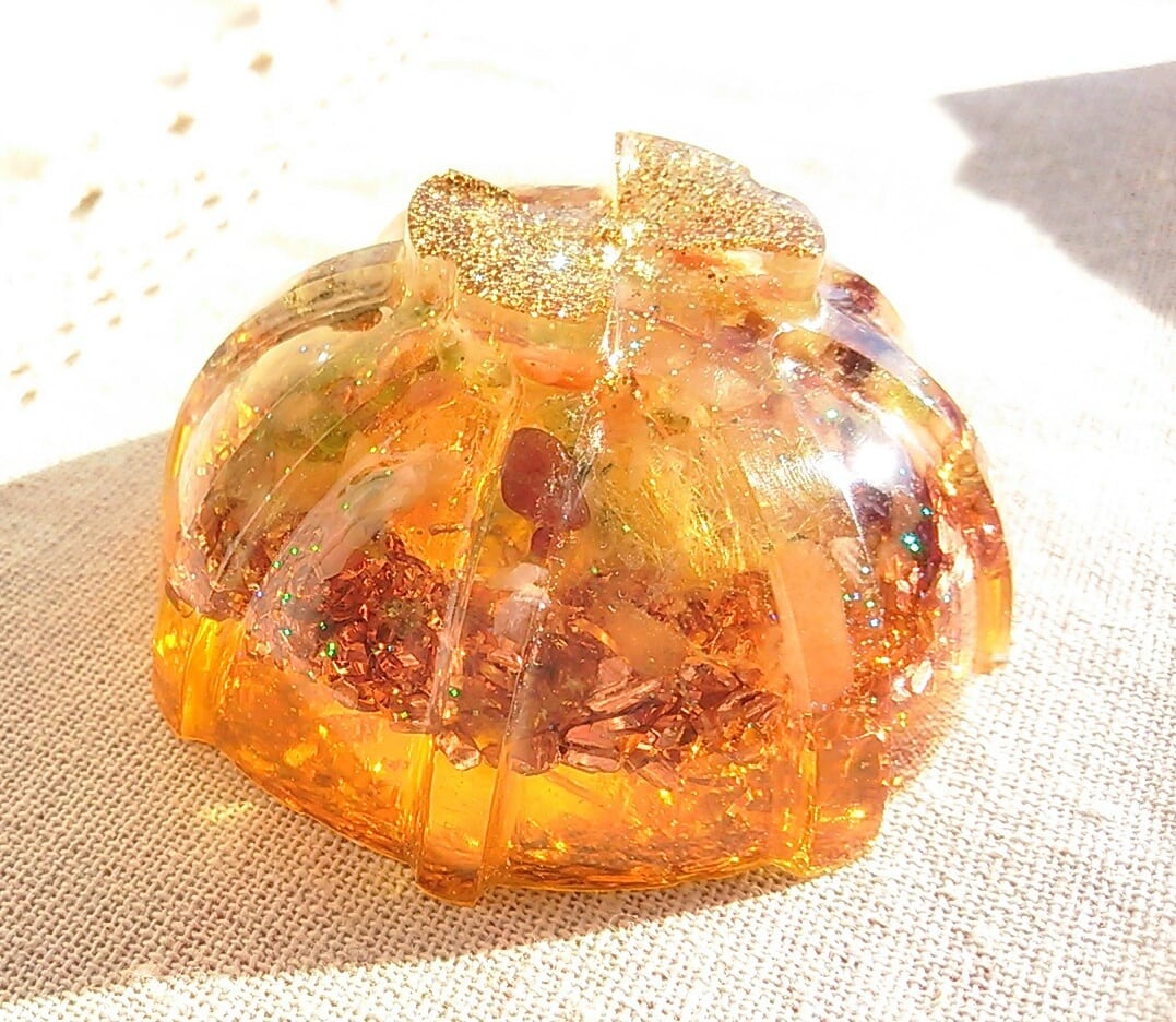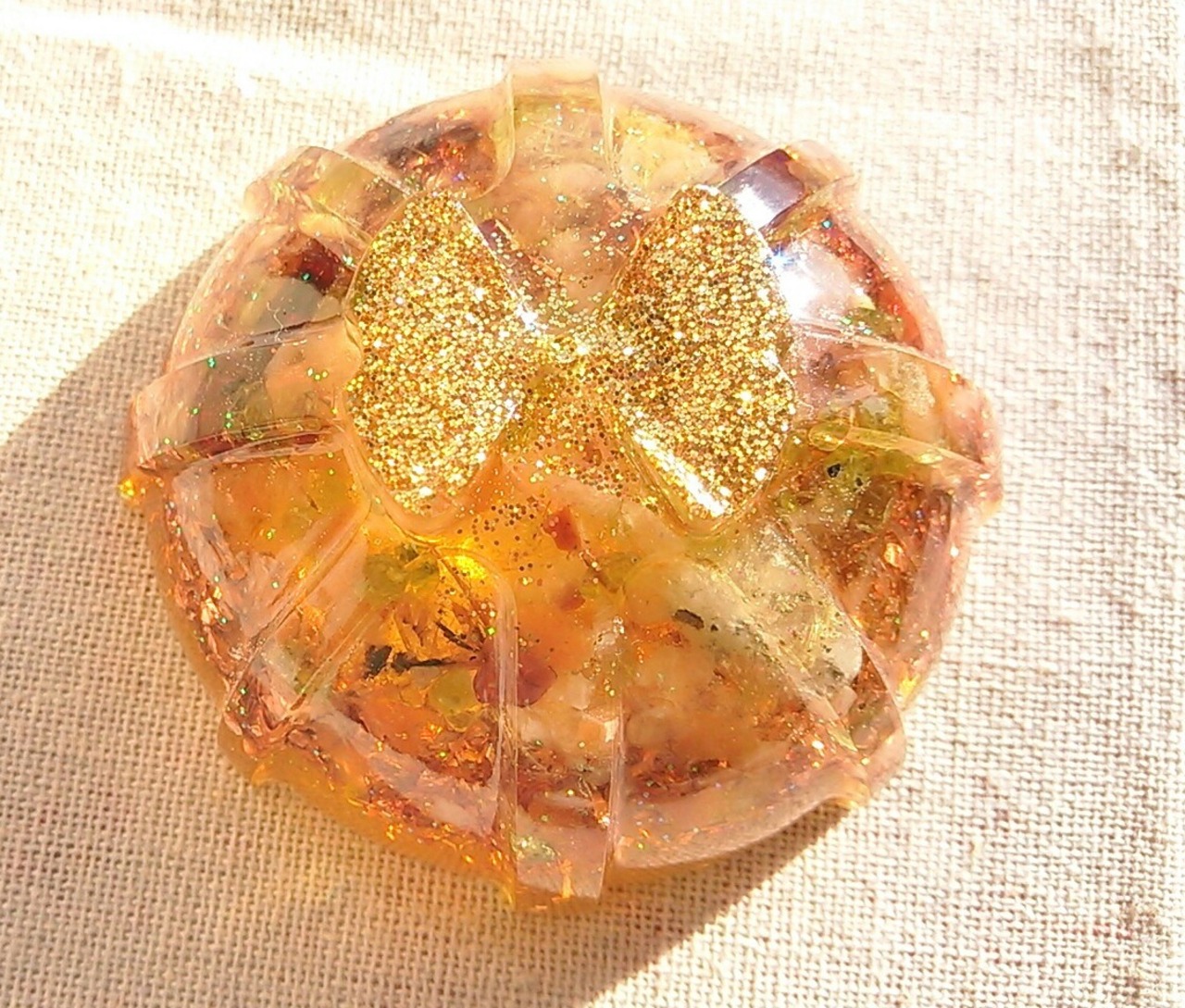 こちらのオルゴナイト、大きめのルチルクォーツが入っているのがバッチリ見えます!