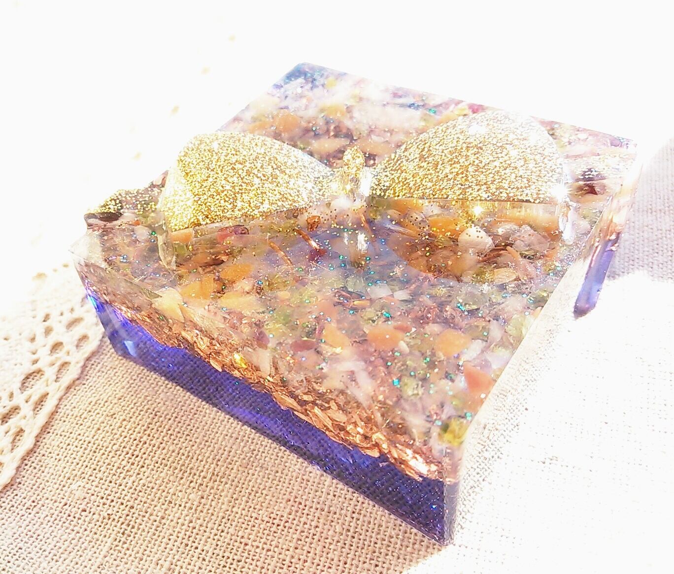 水晶、銅、樹脂の3つを組み合わせて作っています。