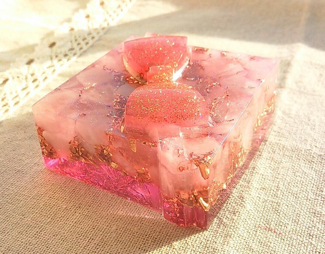 プレゼント型オルゴナイト(ローズクォーツ)