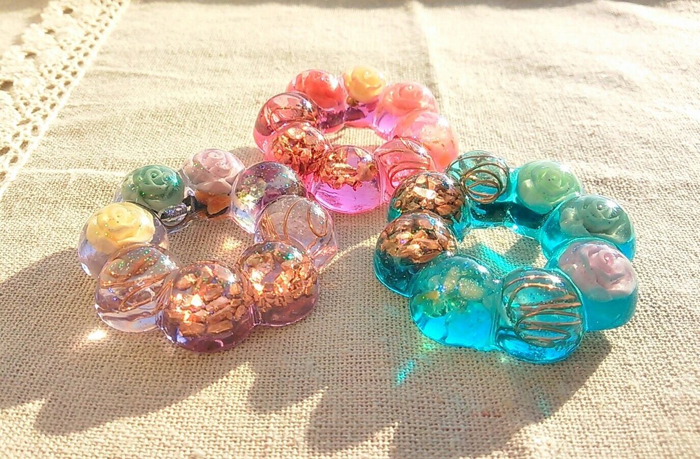 水晶、銅、樹脂の3つを組み合わせて作っています。