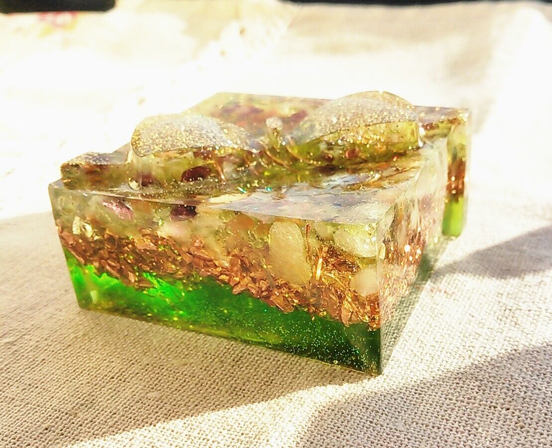 水晶、銅、樹脂の3つを組み合わせて作っています。