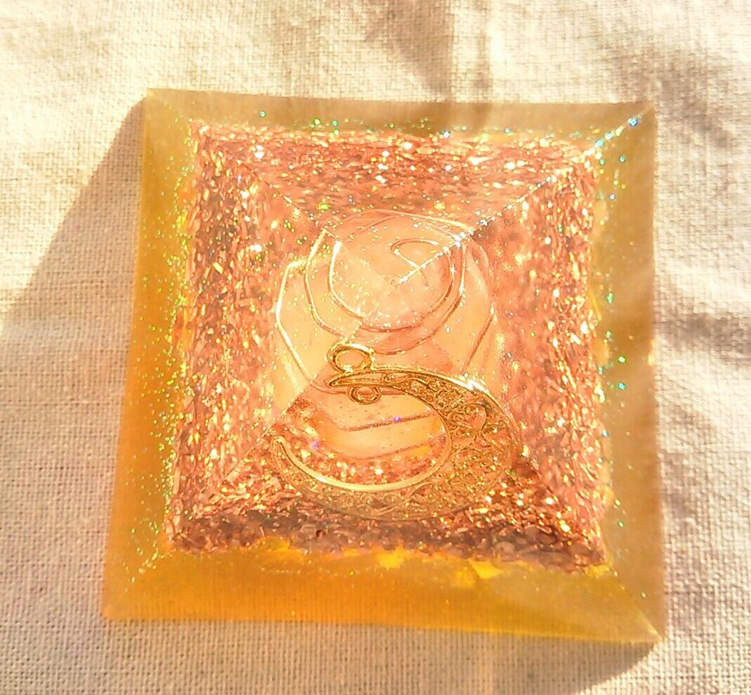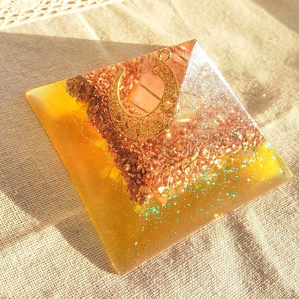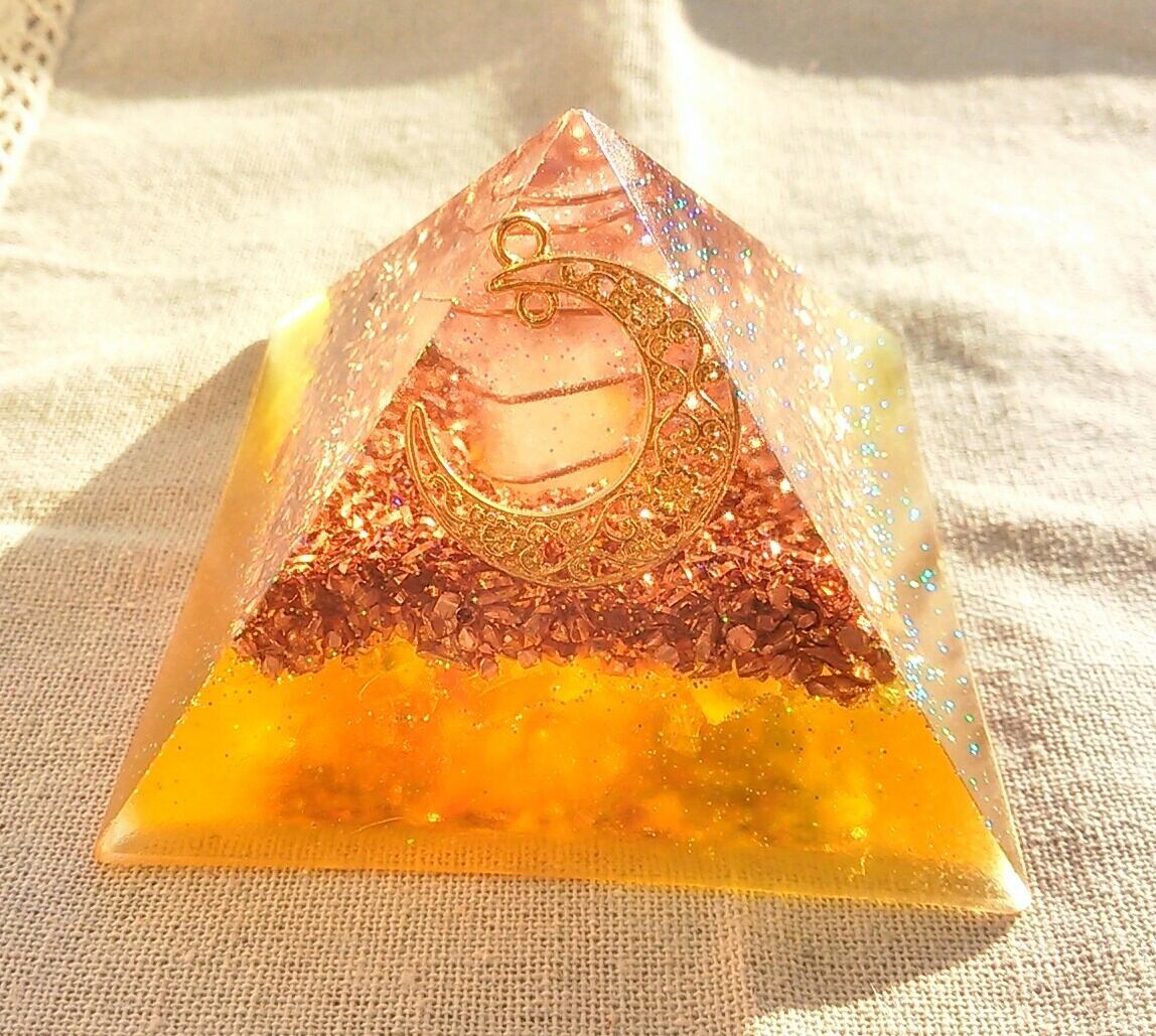 水晶、銅、樹脂の3つを組み合わせて作っています。