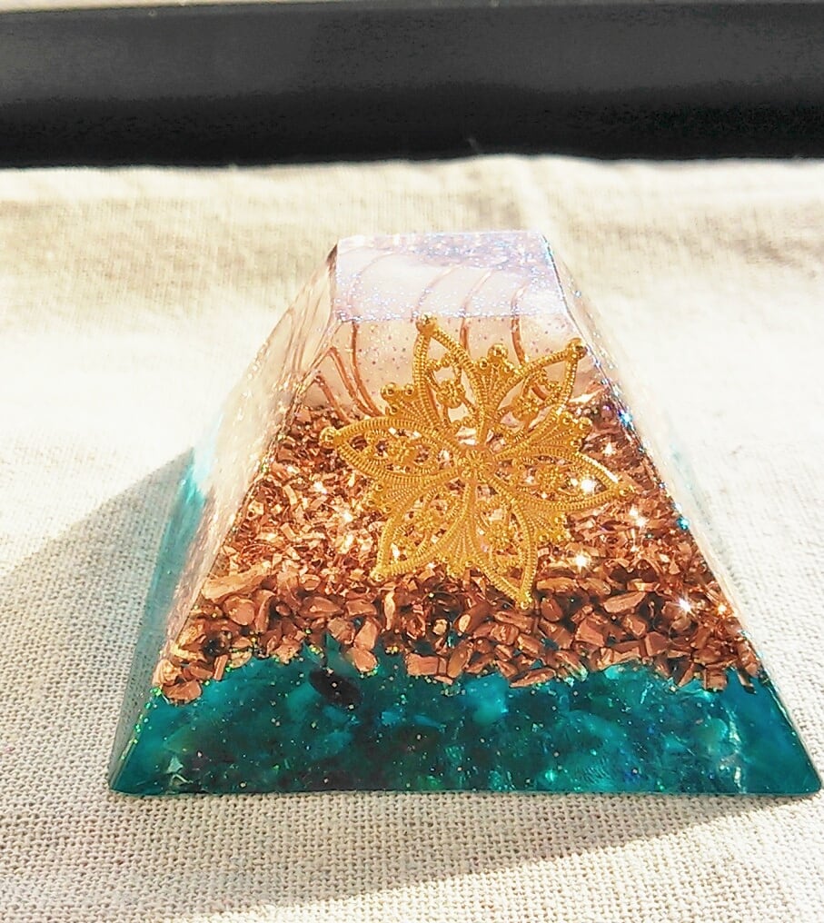 水晶、銅、樹脂の3つを組み合わせて作っています。