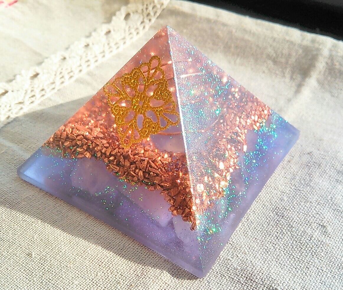 水晶、銅、樹脂の3つを組み合わせて作っています。