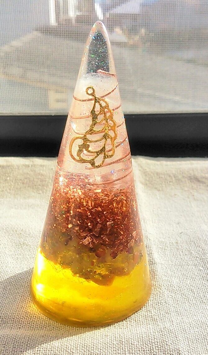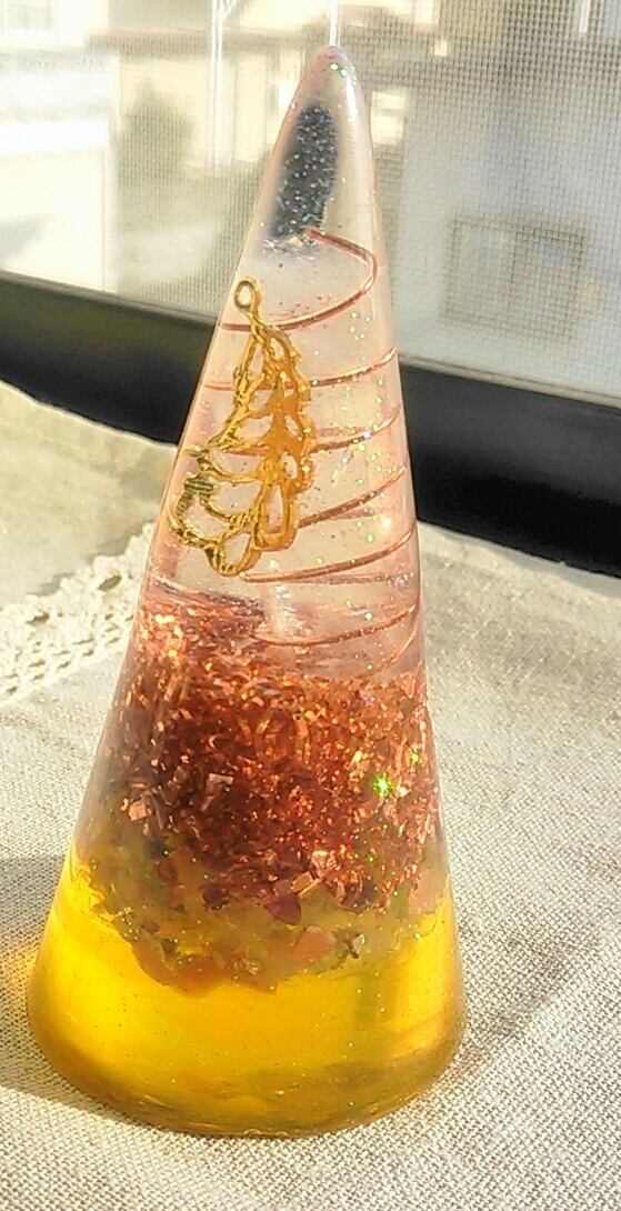 水晶、銅、樹脂の3つを組み合わせて作っています。