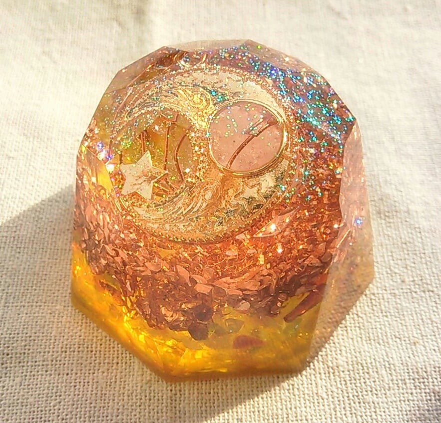 水晶、銅、樹脂の3つを組み合わせて作っています。
