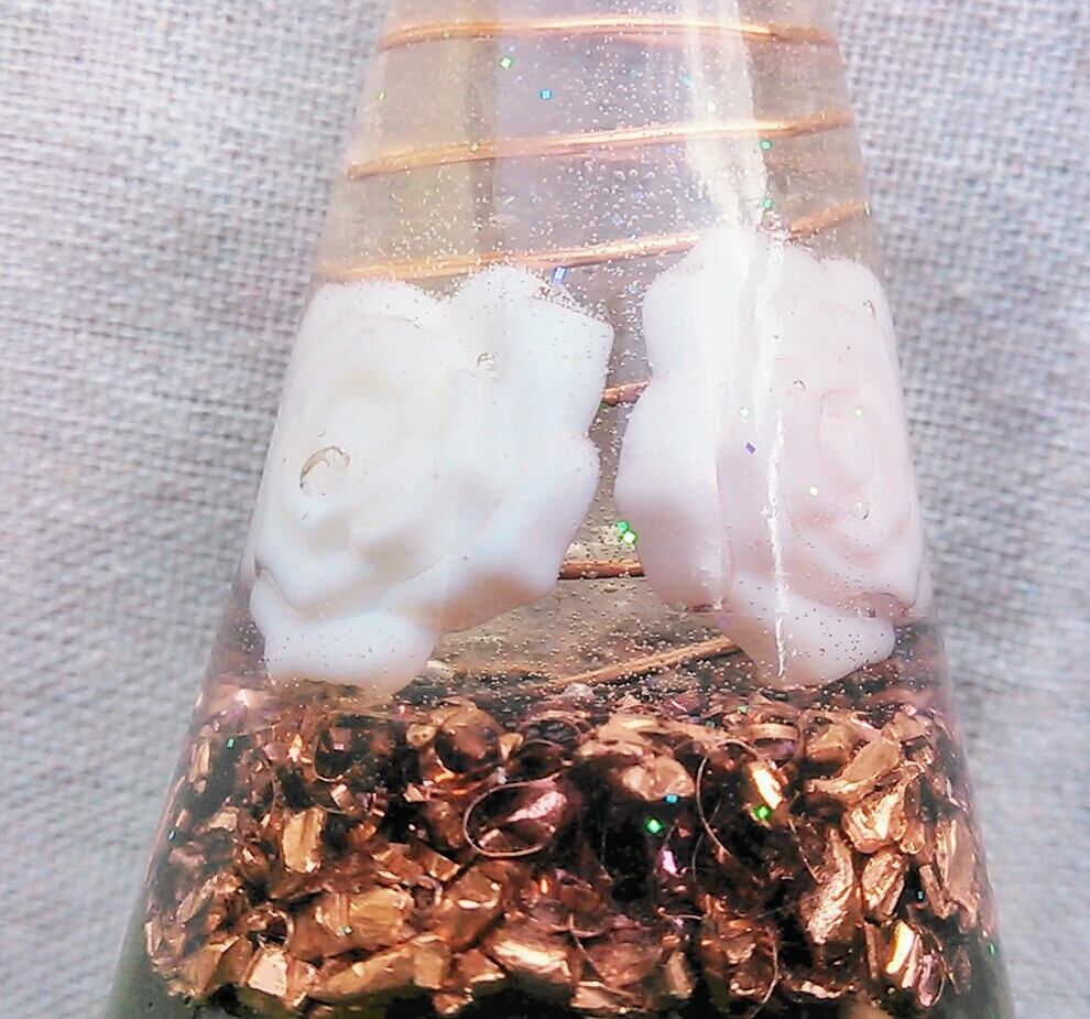 水晶、銅、樹脂の3つを組み合わせて作っています。