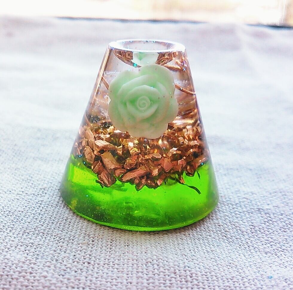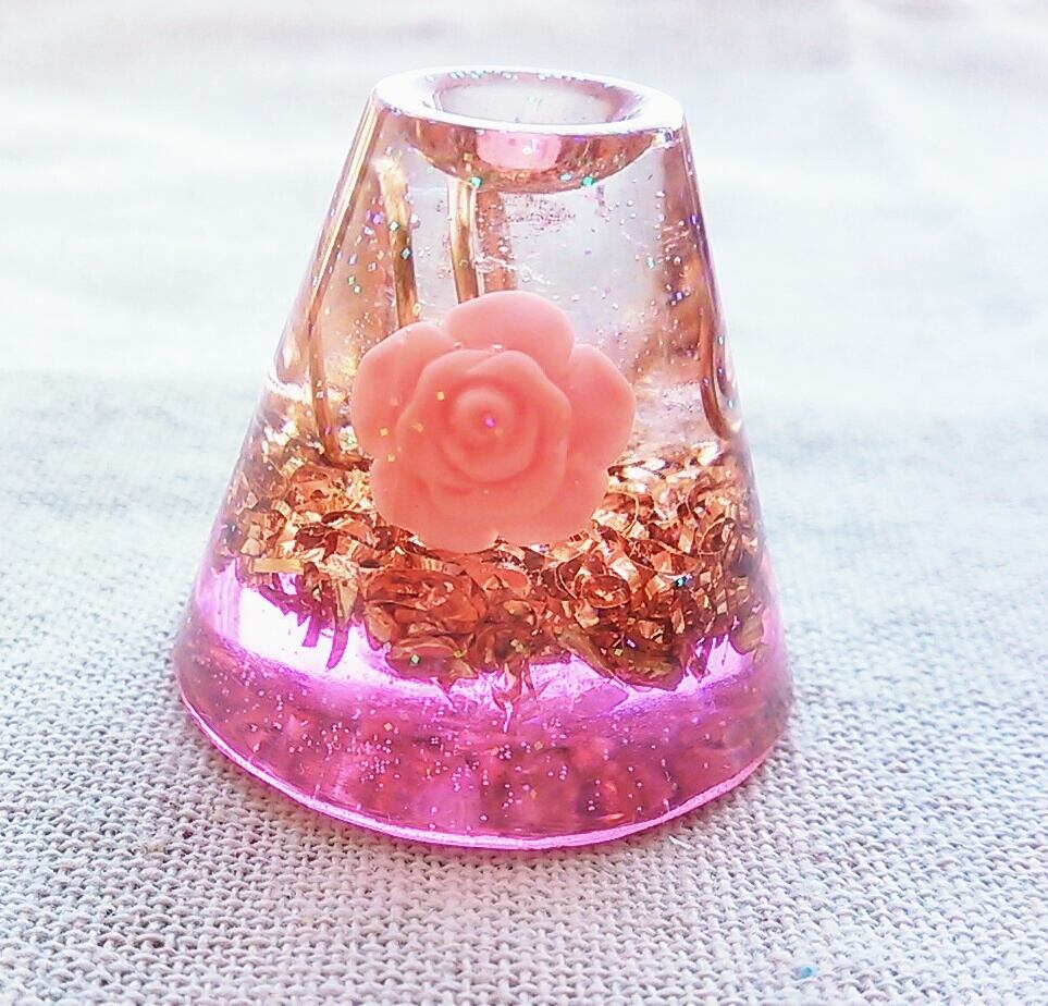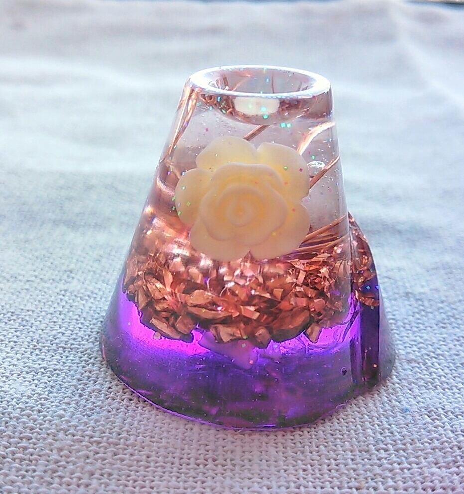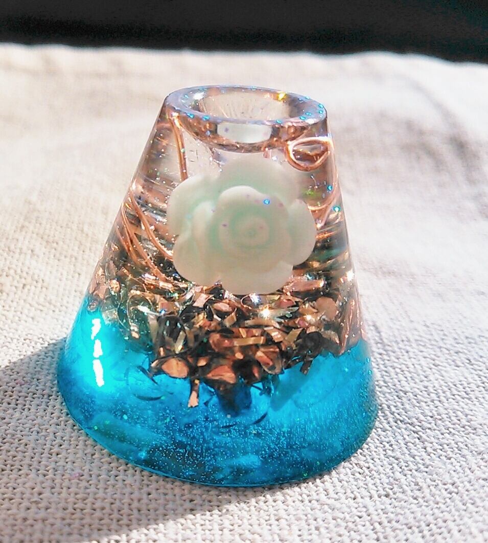 水晶、銅、樹脂の3つを組み合わせて作っています。