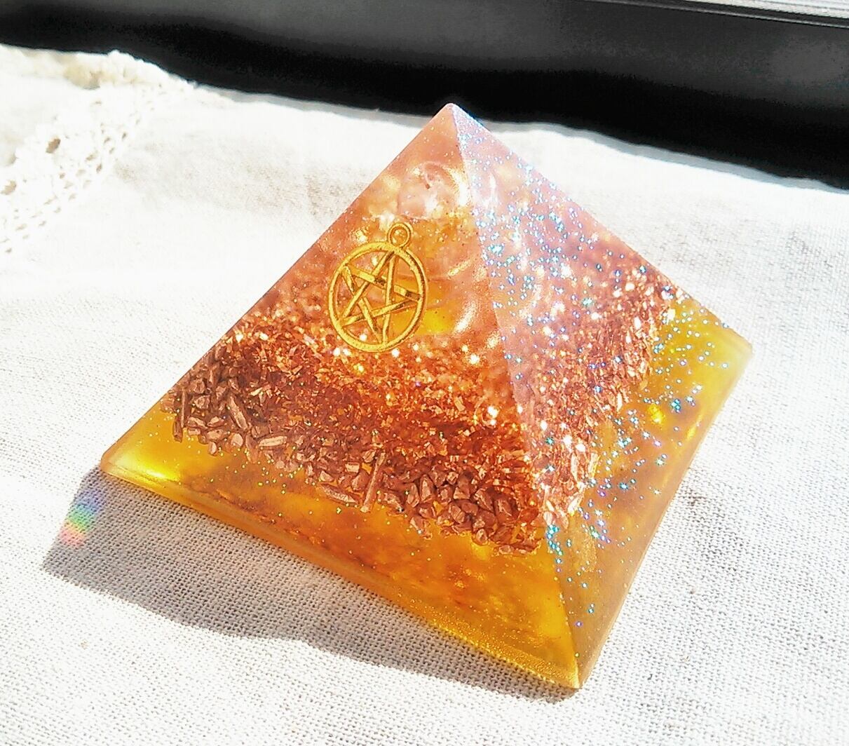 石あそび風の森さんコラボピラミッド型オルゴナイト(黄)