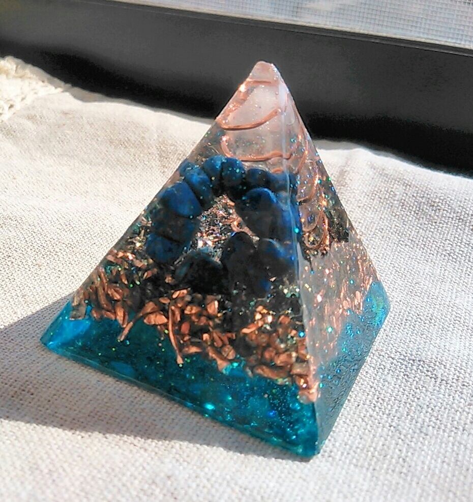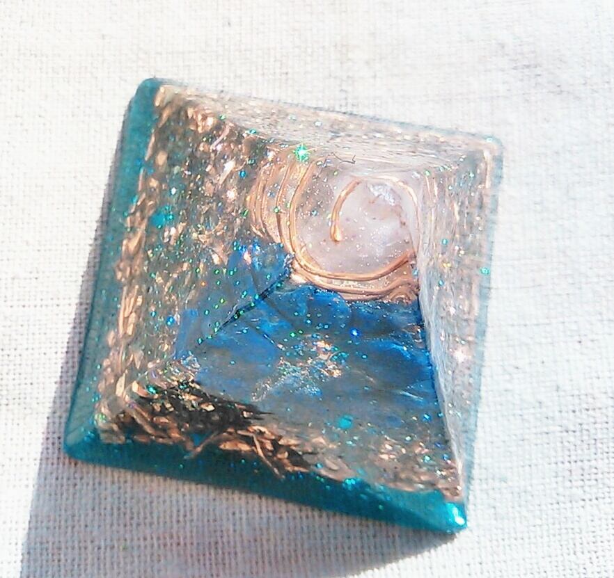 水晶、銅、樹脂の3つを組み合わせて作っています。