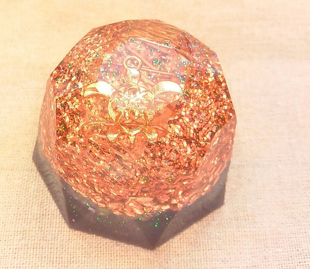水晶、銅、樹脂の3つを組み合わせて作っています。