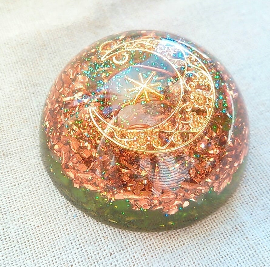 水晶、銅、樹脂の3つを組み合わせて作っています。