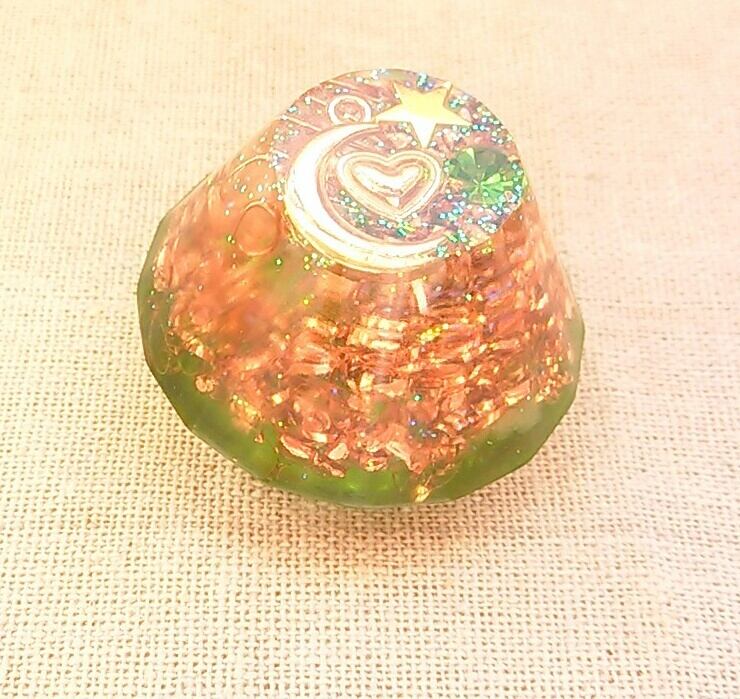 水晶、銅、樹脂の3つを組み合わせて作っています。