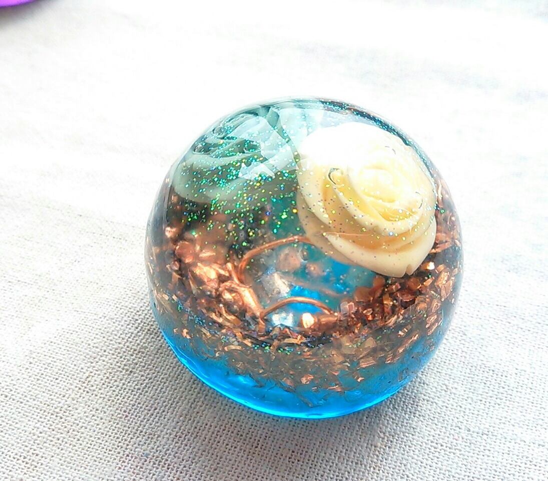 水晶、銅、樹脂の3つを組み合わせて作っています。