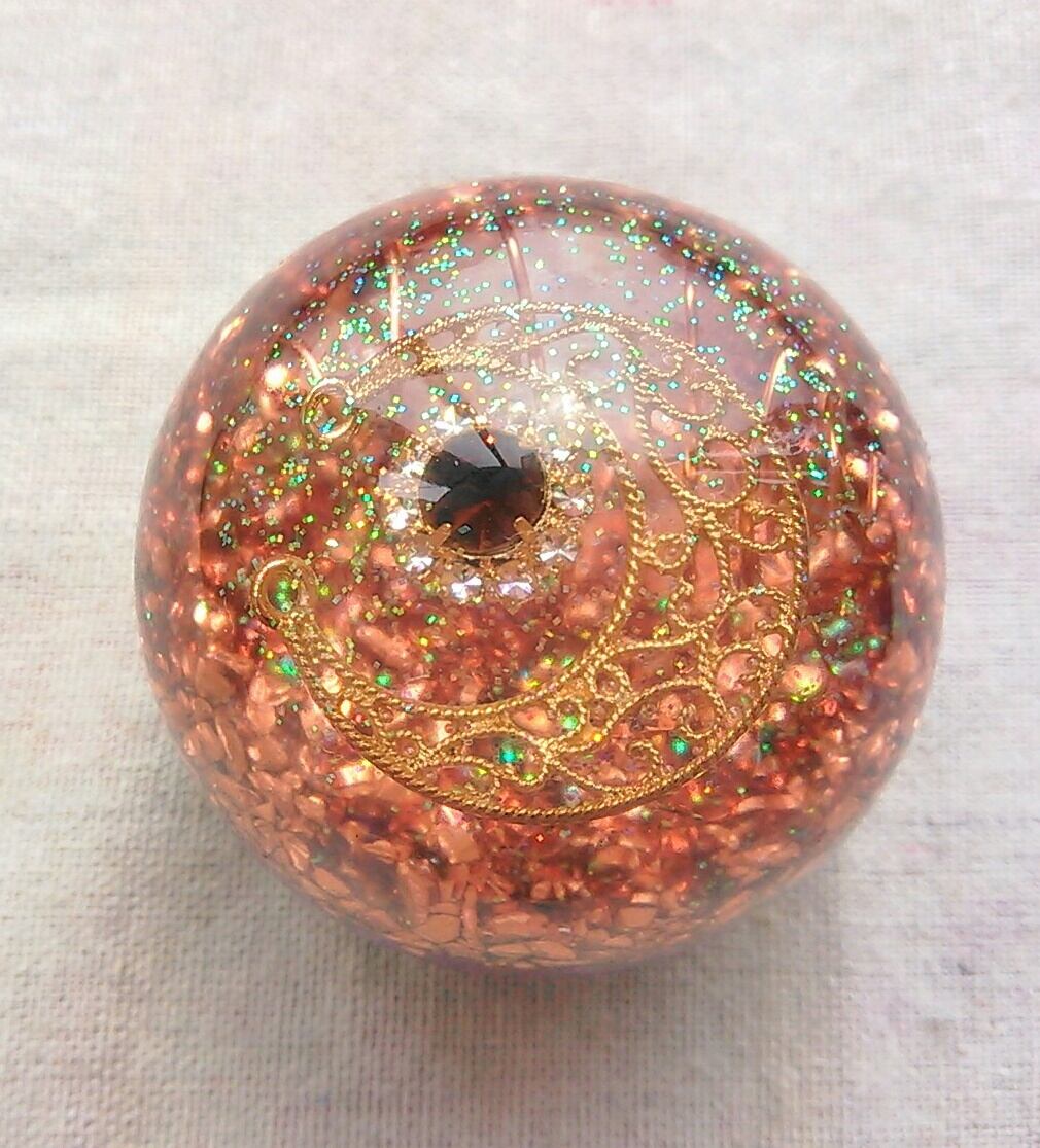 水晶、銅、樹脂の3つを組み合わせて作っています。