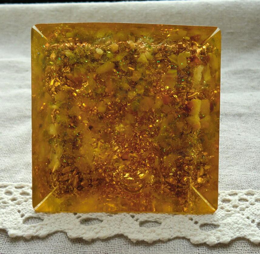 水晶、銅、樹脂の3つを組み合わせて作っています。