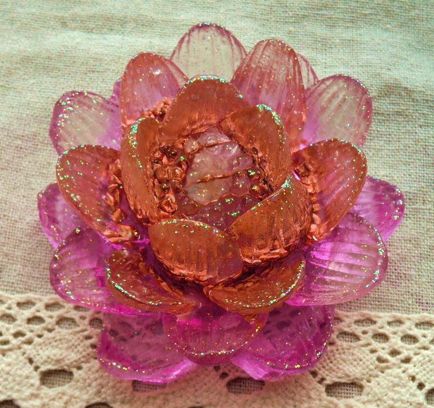 水晶、銅、樹脂の3つを組み合わせて作っています。