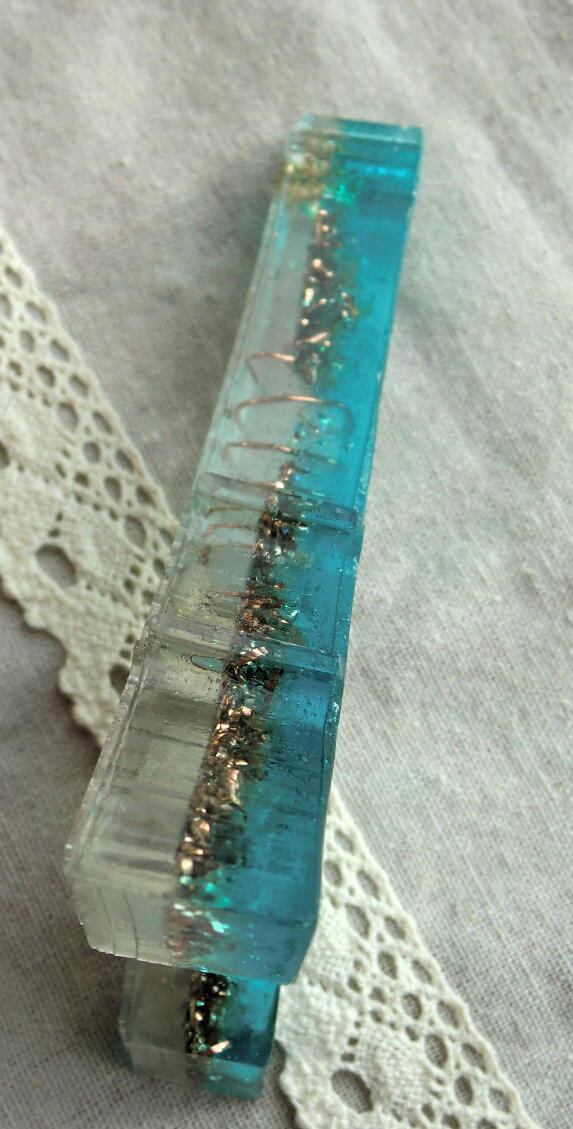 水晶、銅、樹脂の3つを組み合わせて作っています。