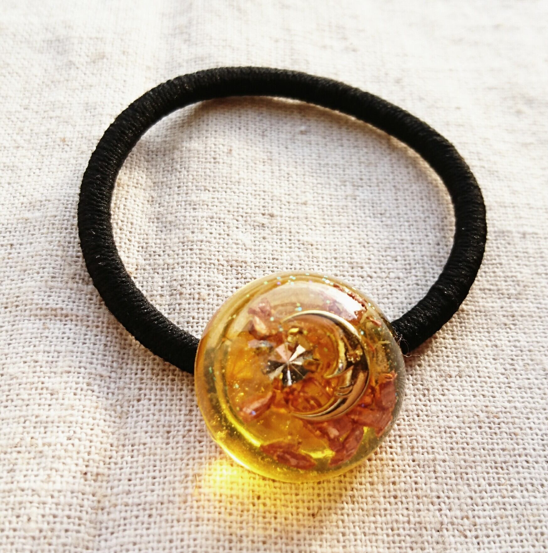 *.+゚オルゴナイト付きヘアゴム(半円黄色)*.+゚