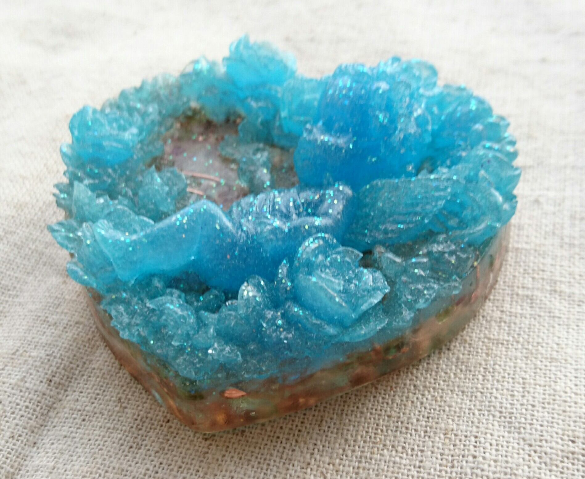 水晶、銅、樹脂の3つを組み合わせて作っています。