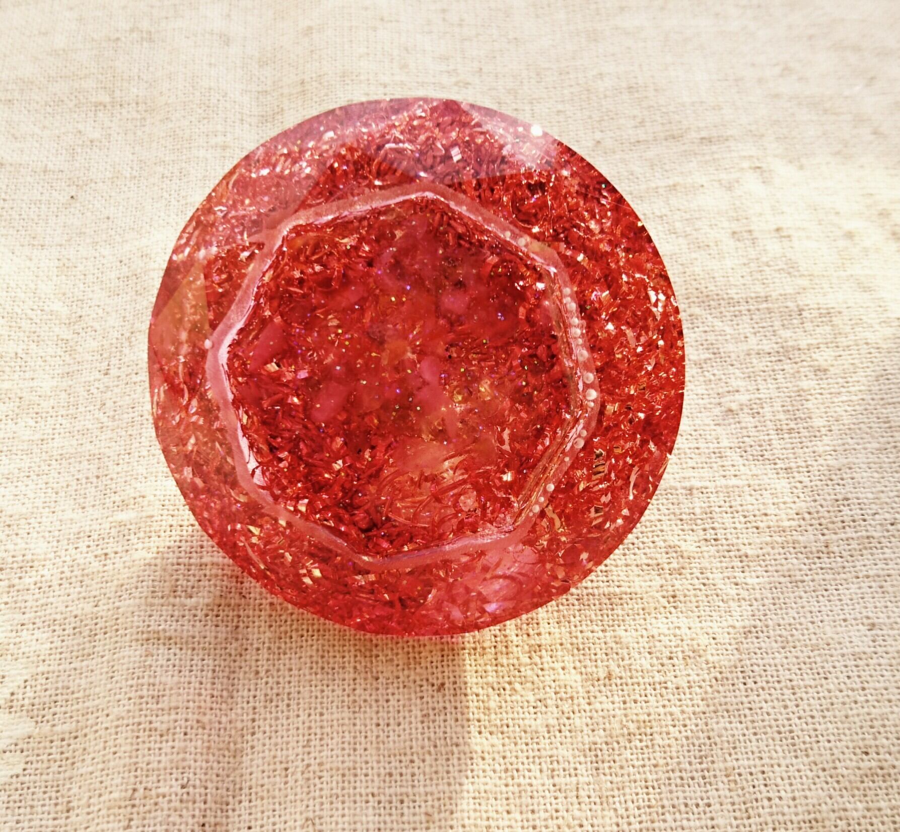 水晶、銅、樹脂の3つを組み合わせて作っています。