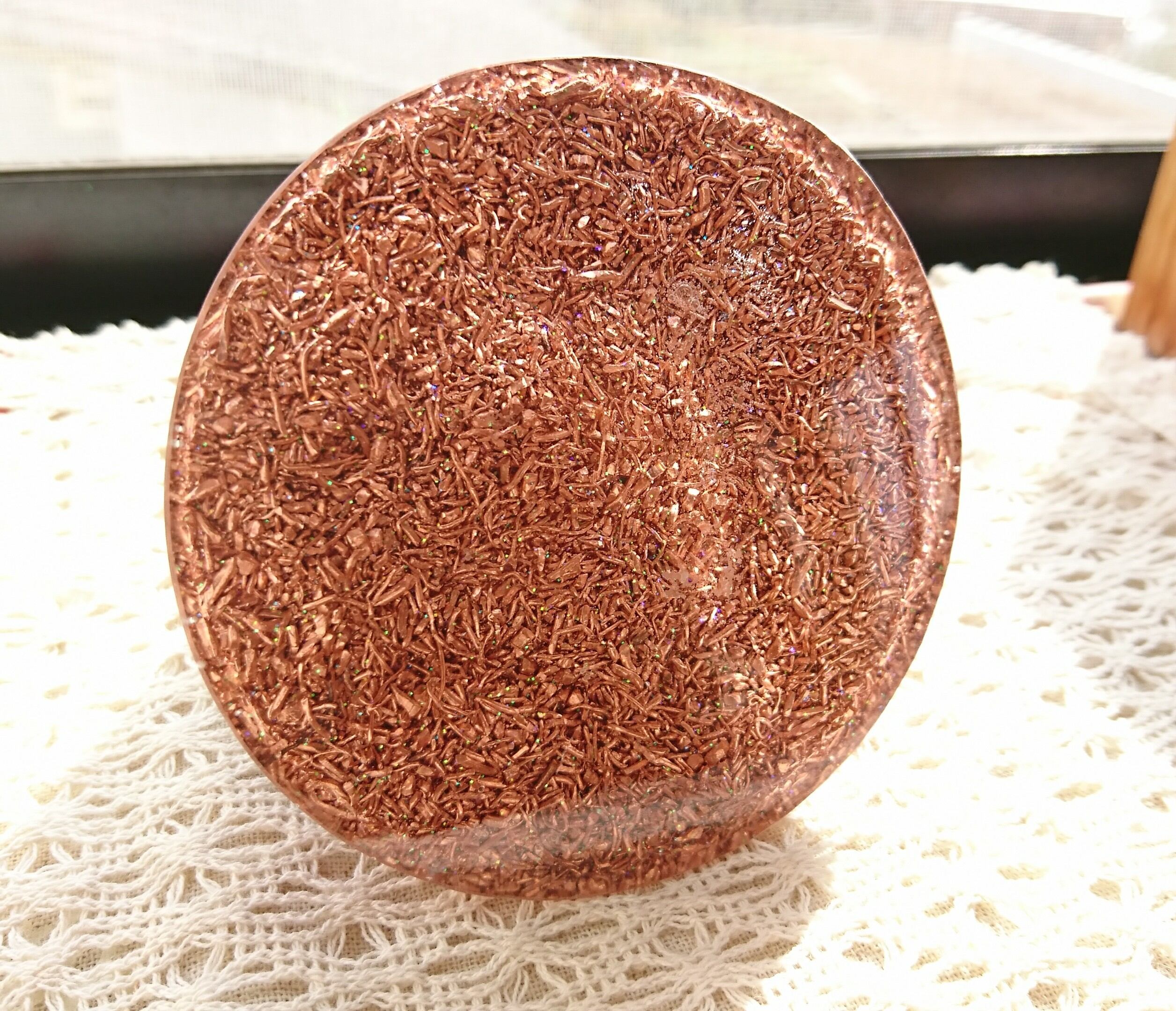 水晶、銅、樹脂の3つを組み合わせて作っています。