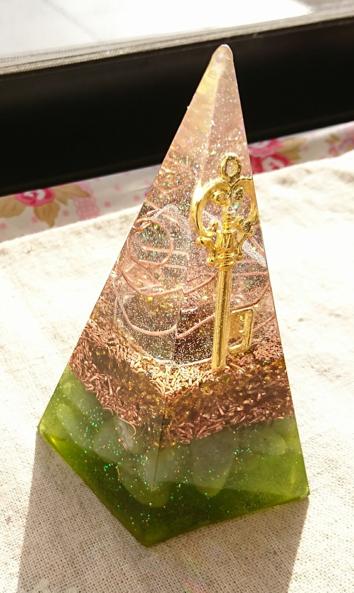水晶、銅、樹脂の3つを組み合わせて作っています。