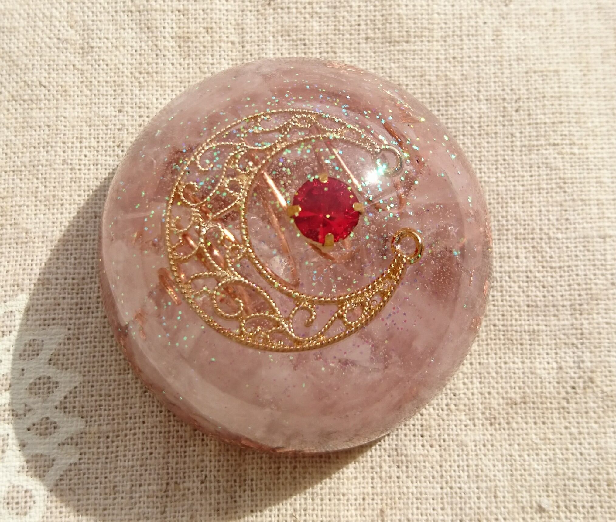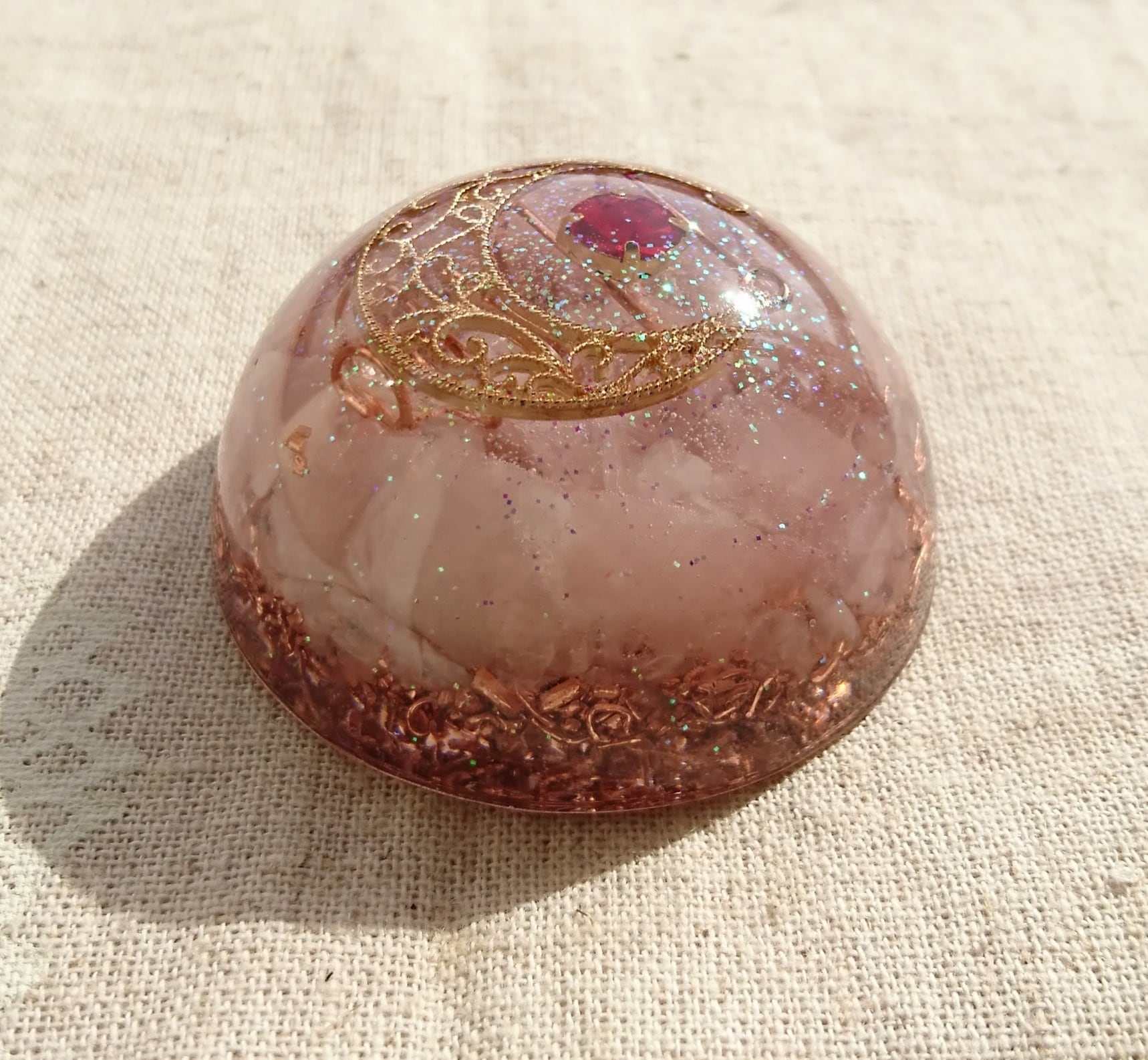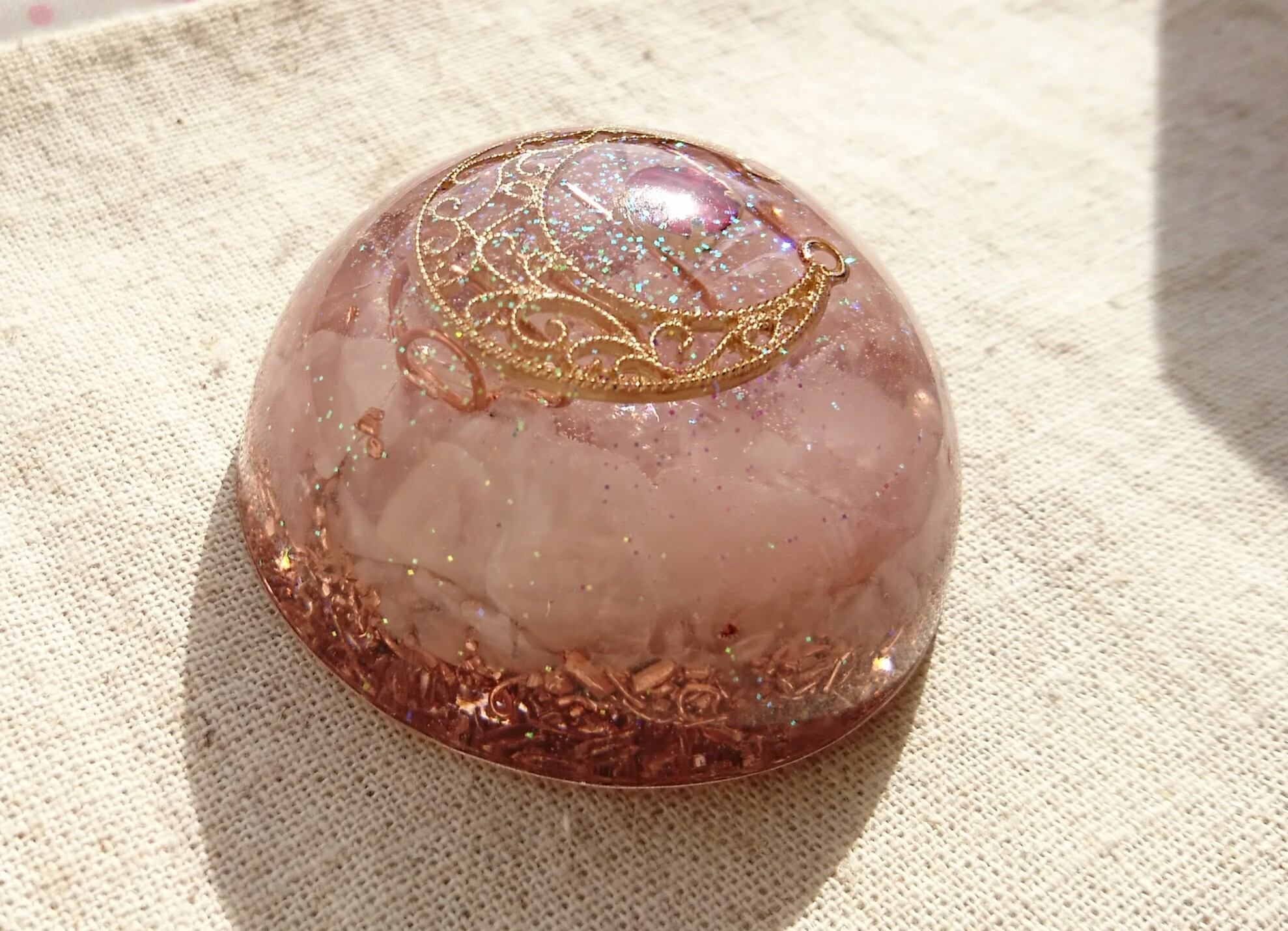 ローズクォーツの、半円形オルゴナイト