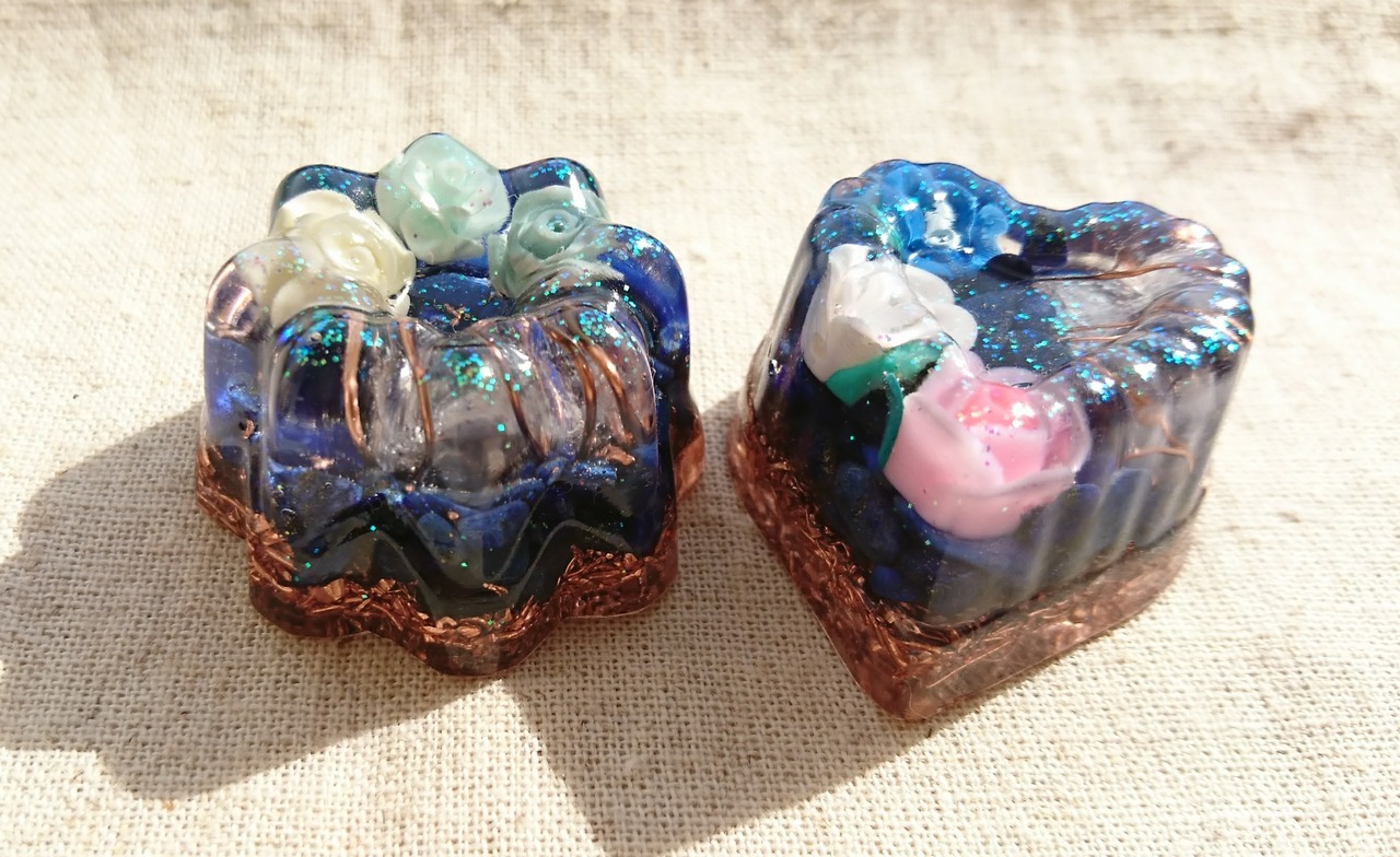 水晶、銅、樹脂の3つを組み合わせて作っています。