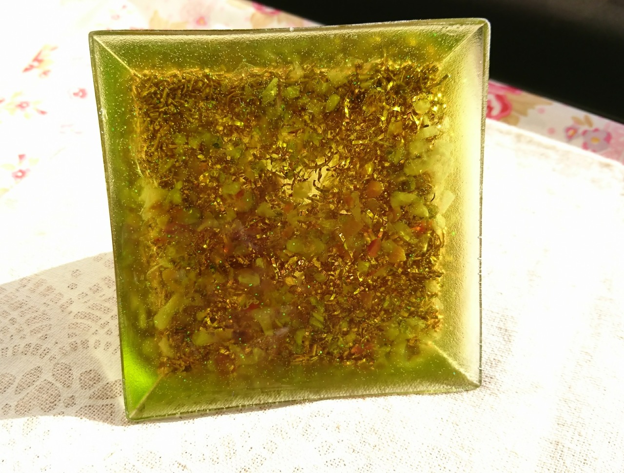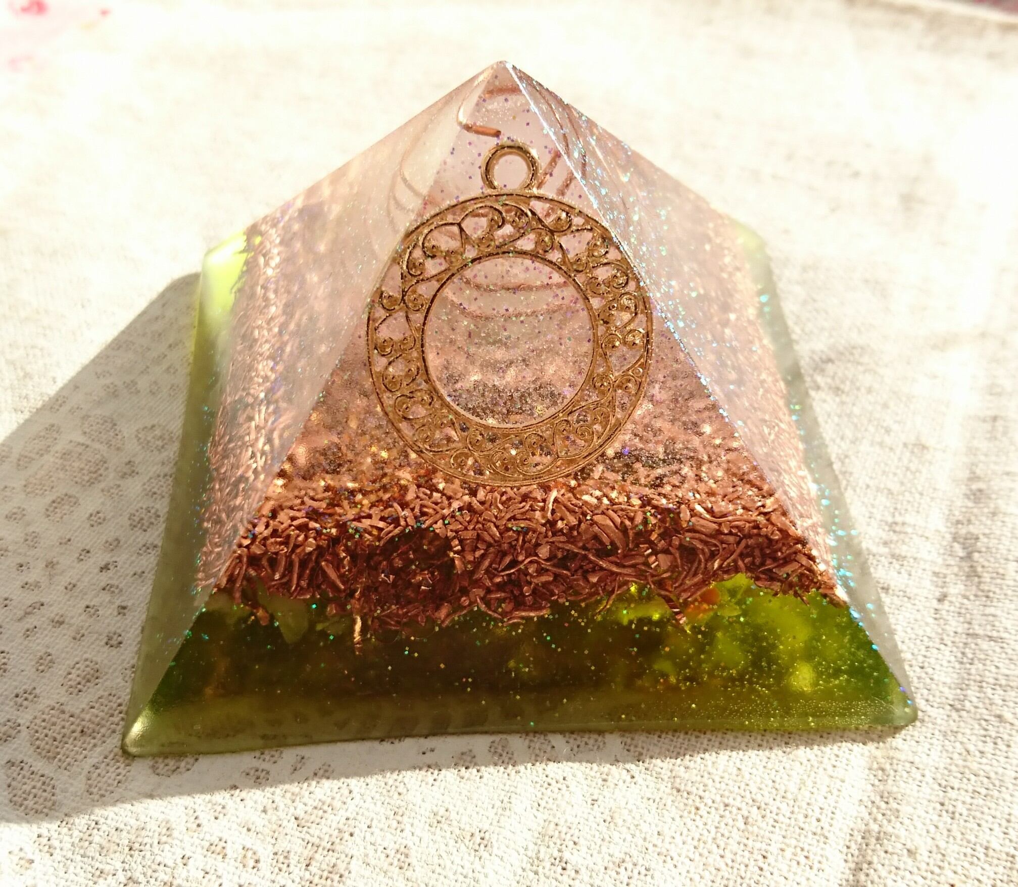 水晶、銅、樹脂の3つを組み合わせて作っています。