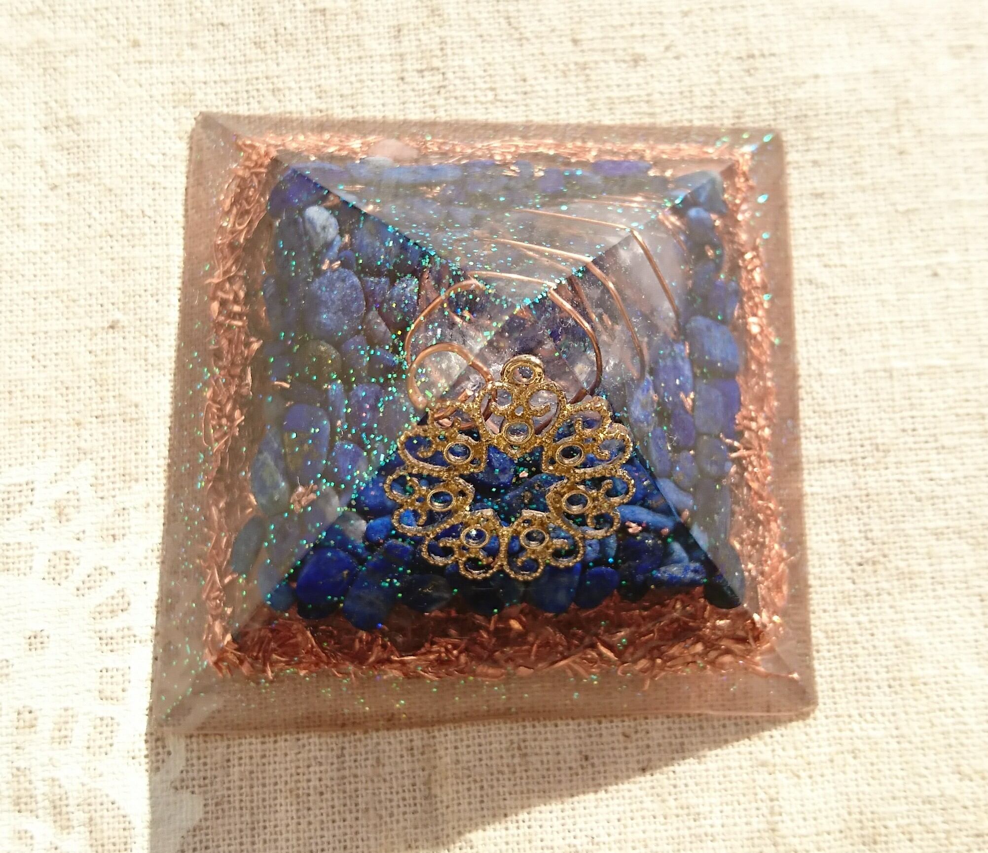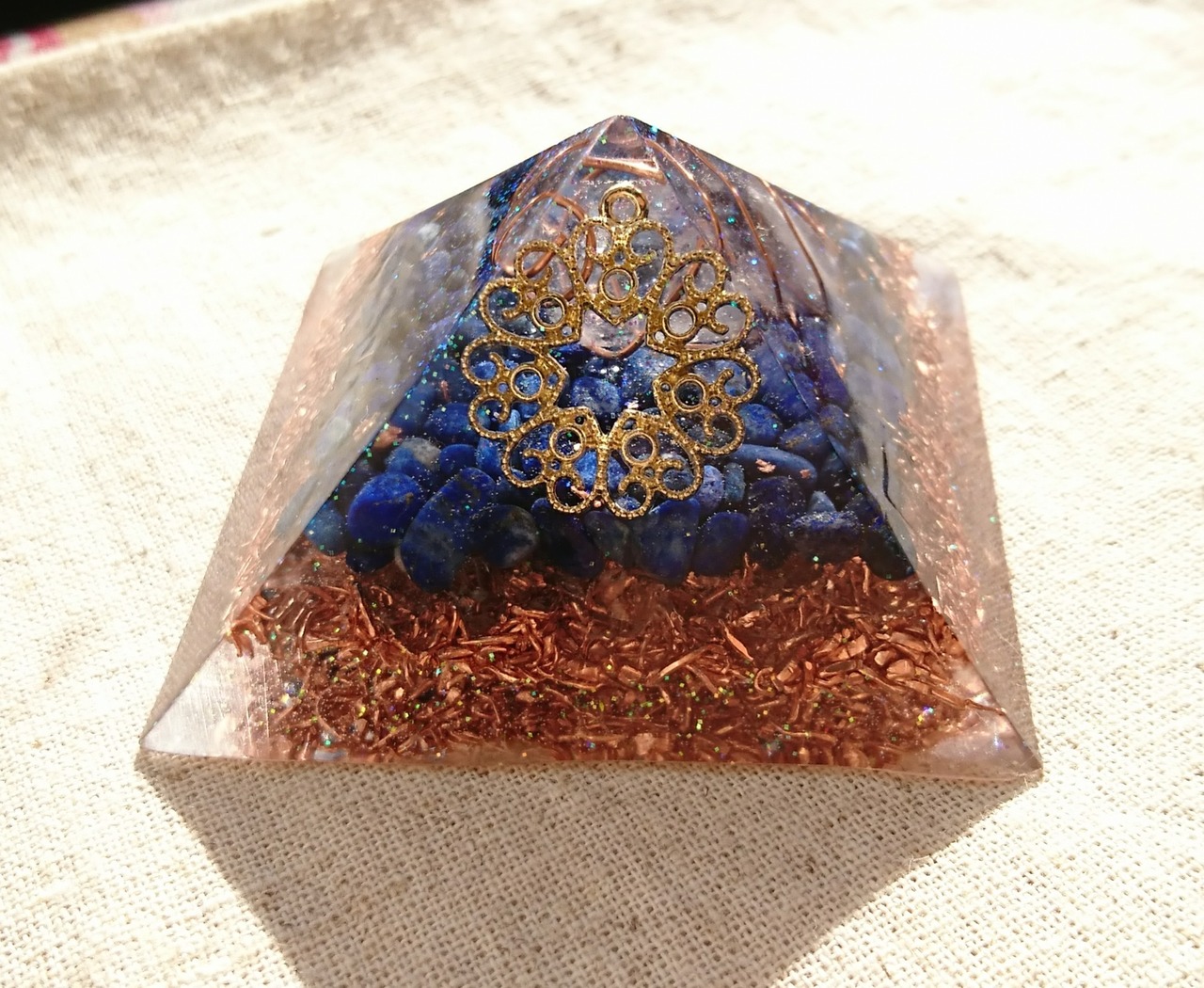 水晶、銅、樹脂の3つを組み合わせて作っています。