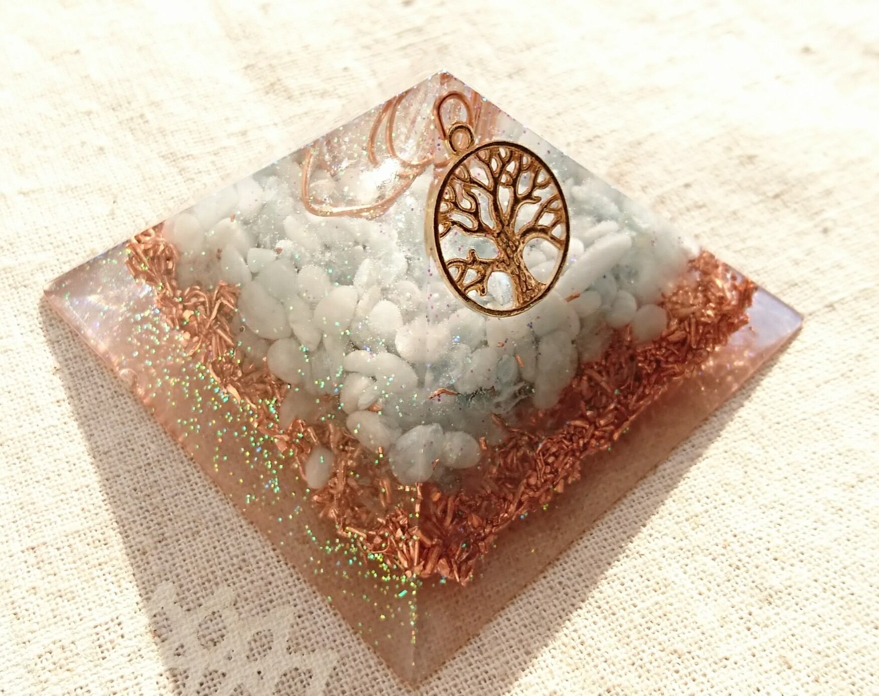 水晶、銅、樹脂の3つを組み合わせて作っています。