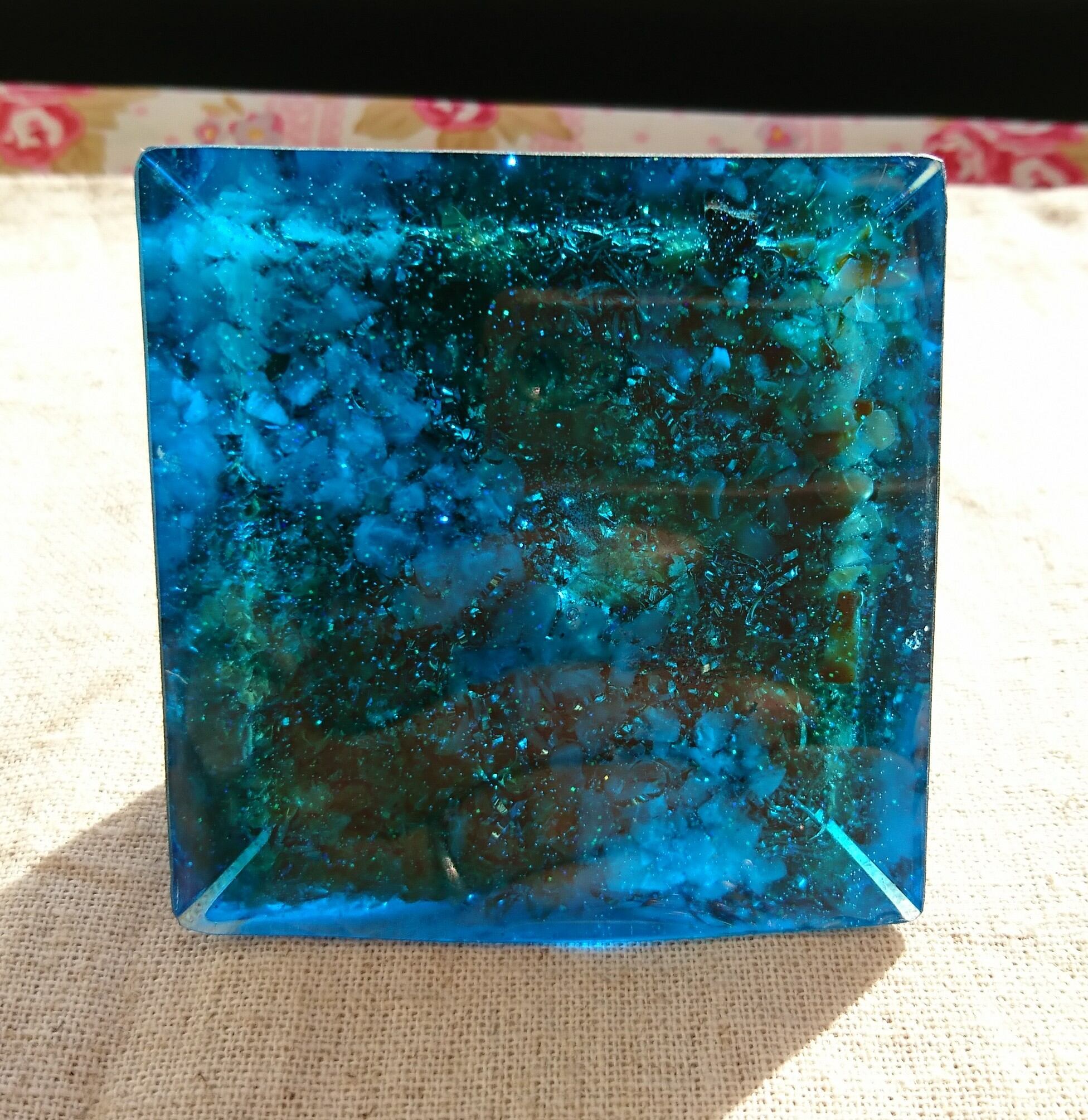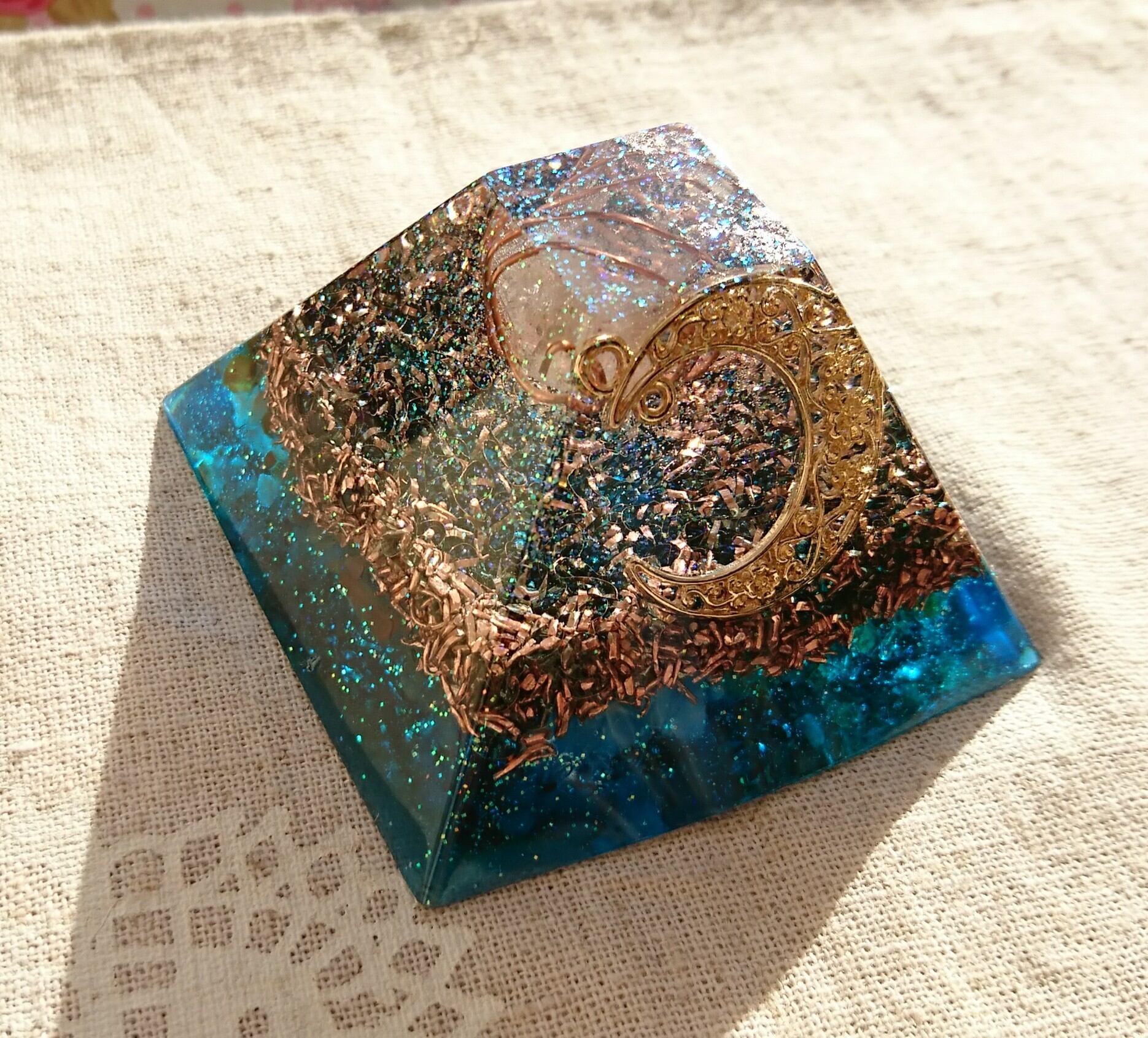 水晶、銅、樹脂の3つを組み合わせて作っています。
