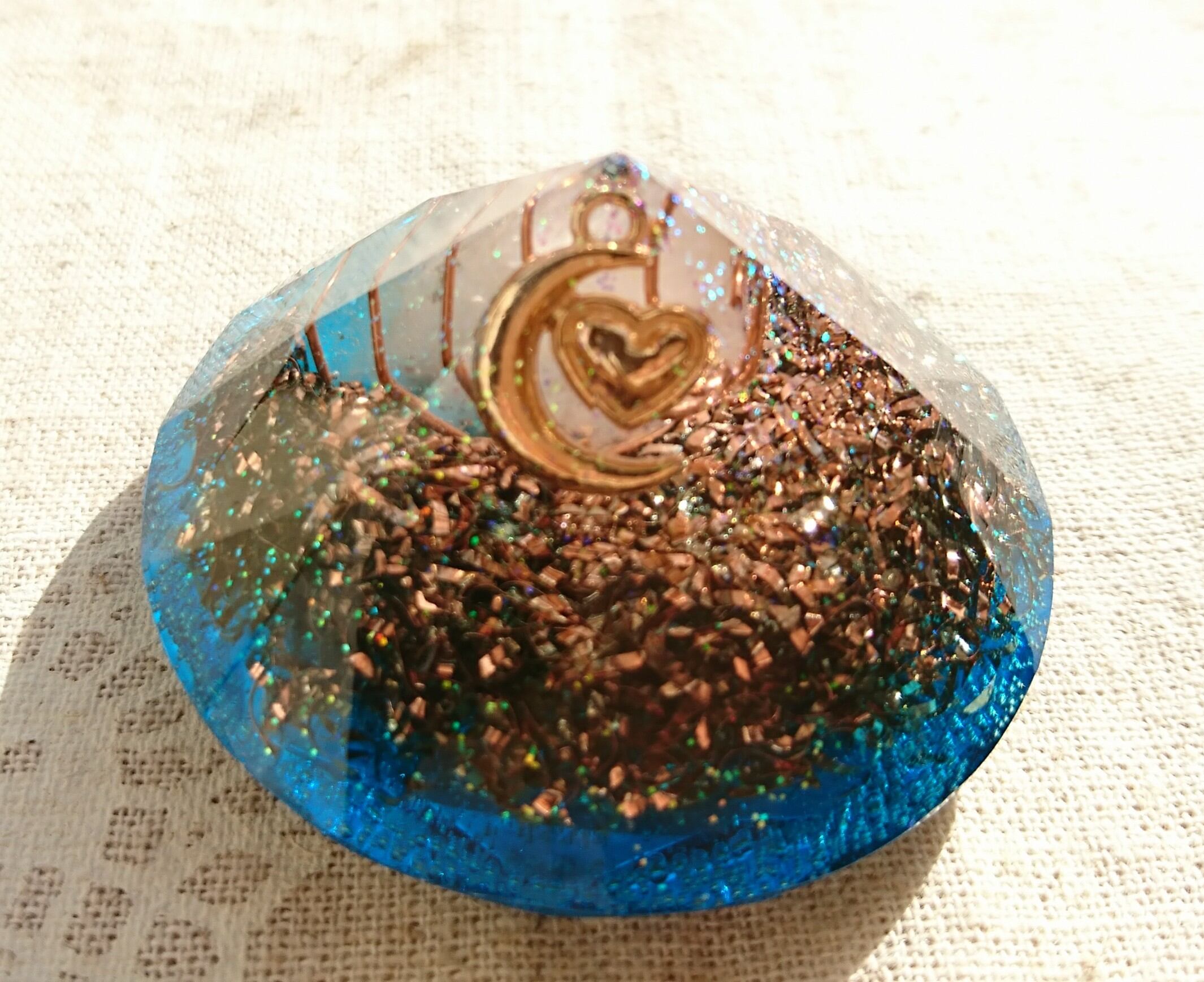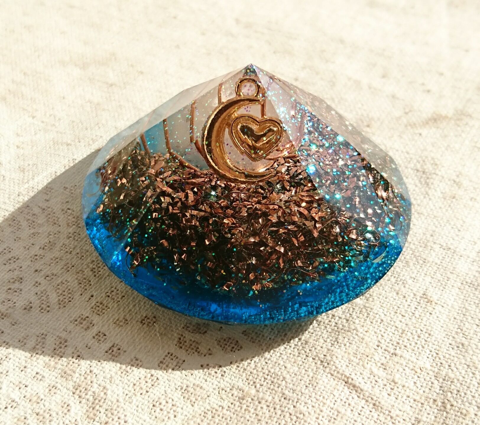 水晶、銅、樹脂の3つを組み合わせて作っています。
