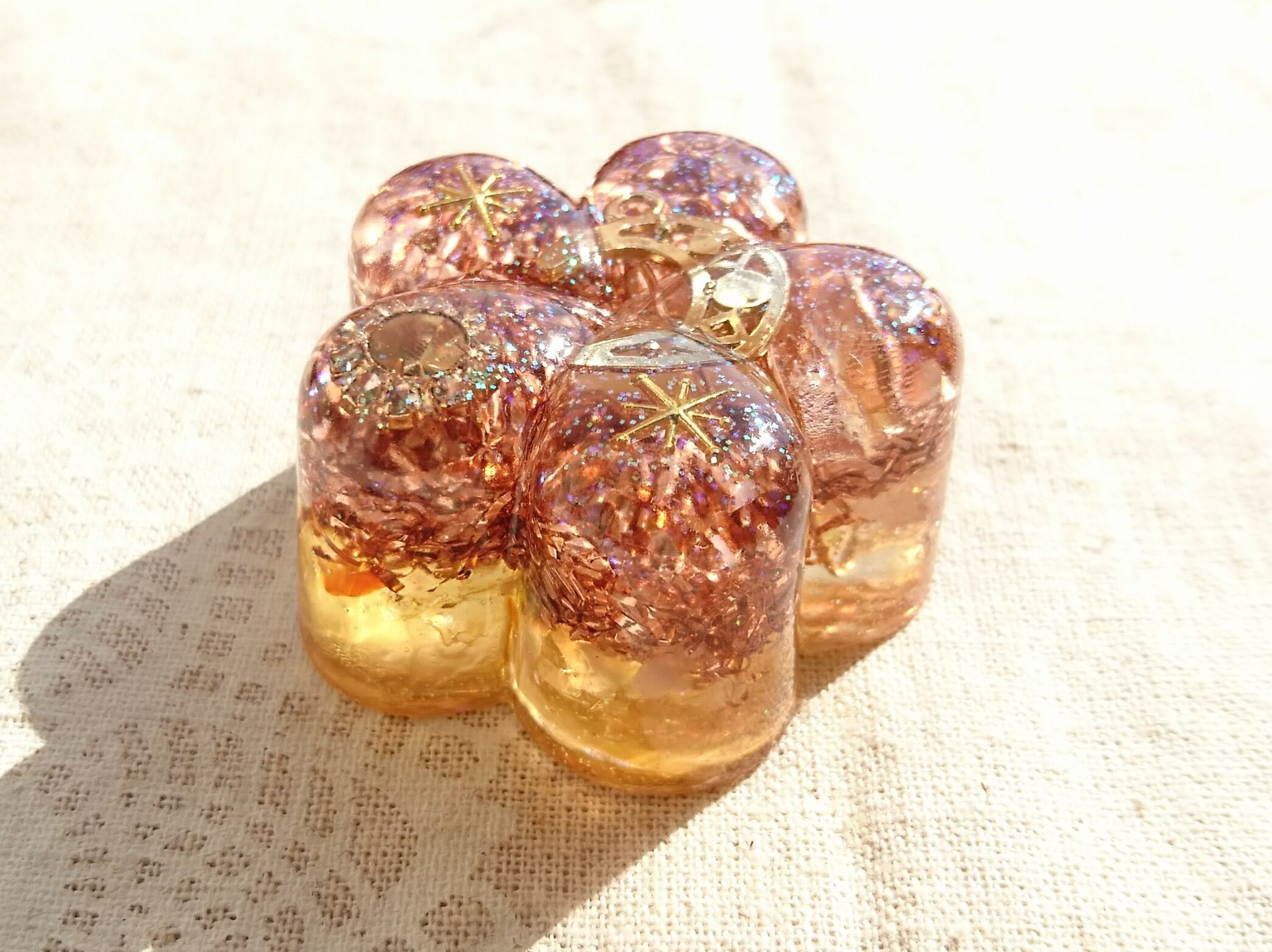 水晶、銅、樹脂の3つを組み合わせて作っています。