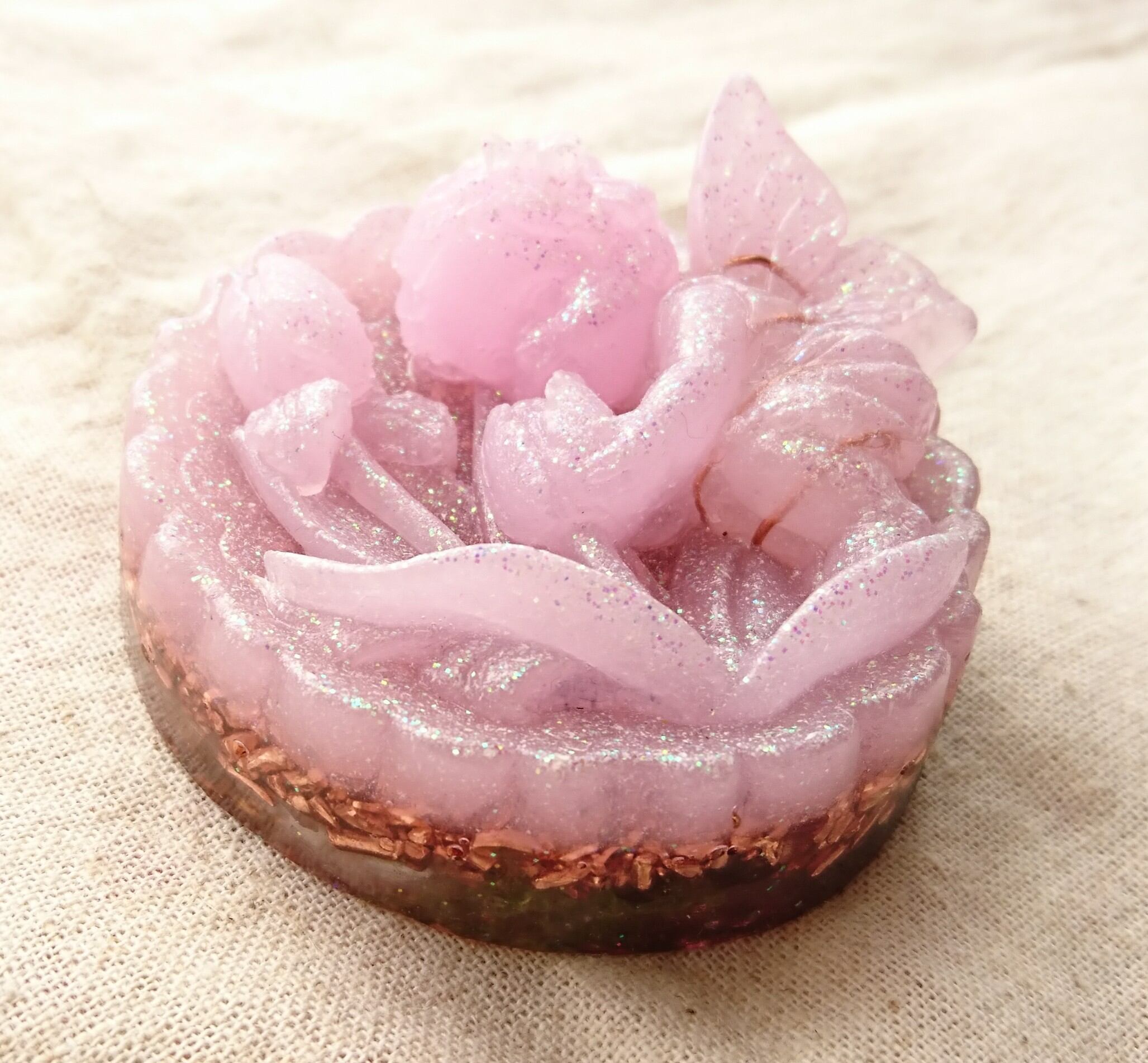 水晶、銅、樹脂の3つを組み合わせて作っています。