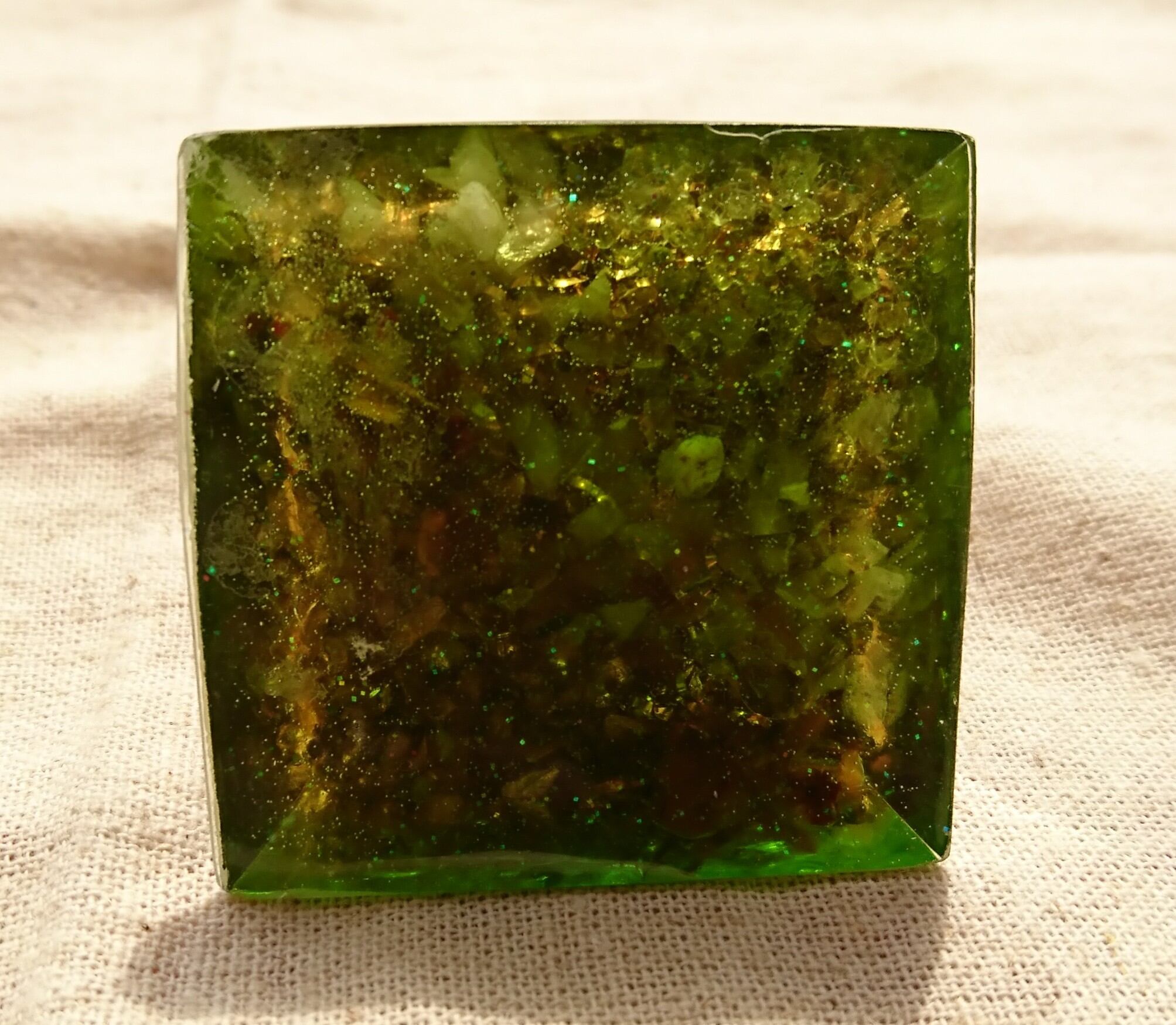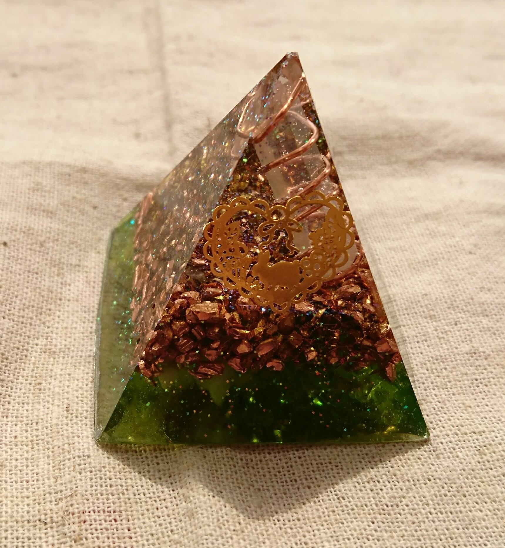 水晶、銅、樹脂の3つを組み合わせて作っています。