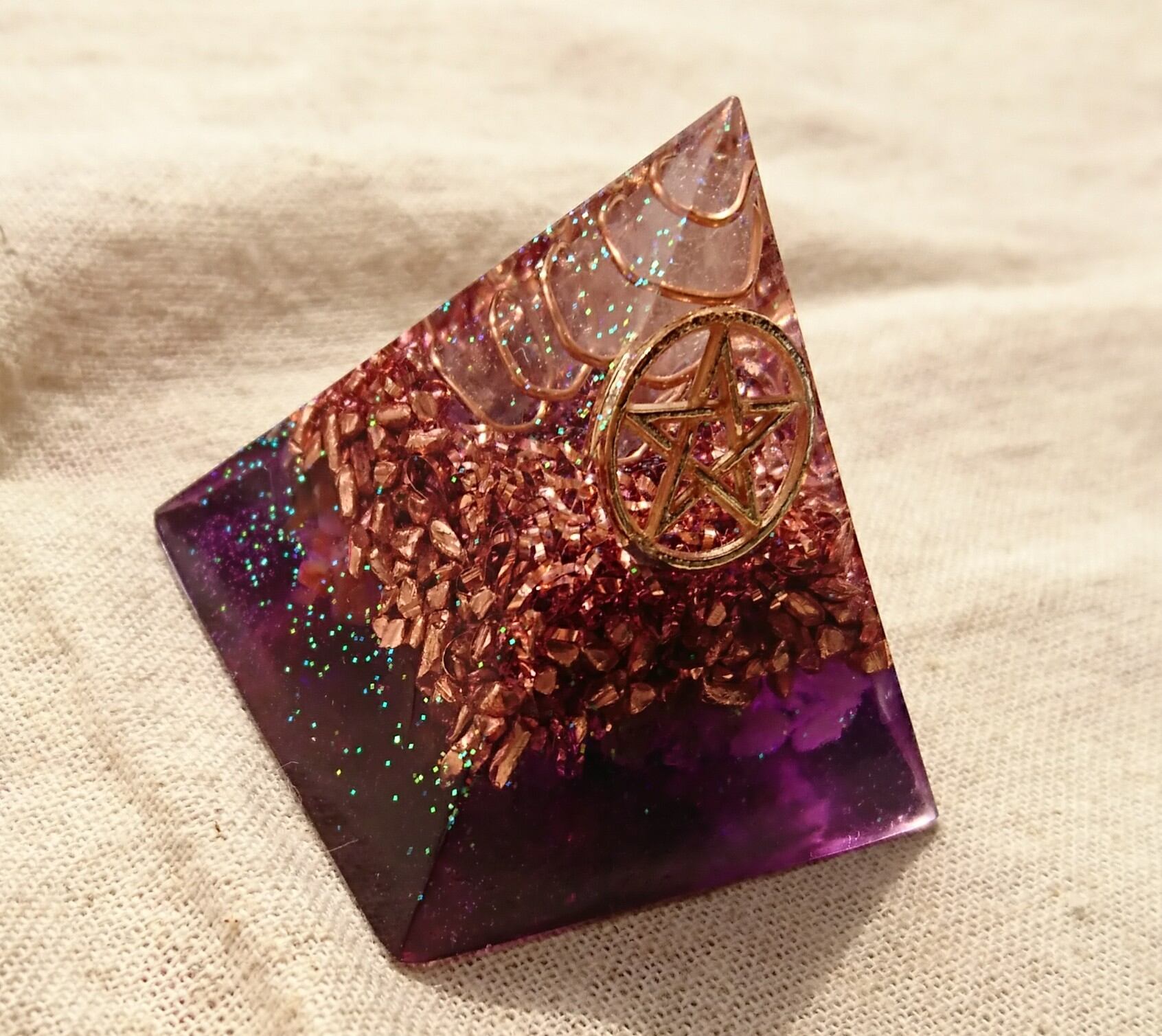 水晶、銅、樹脂の3つを組み合わせて作っています。