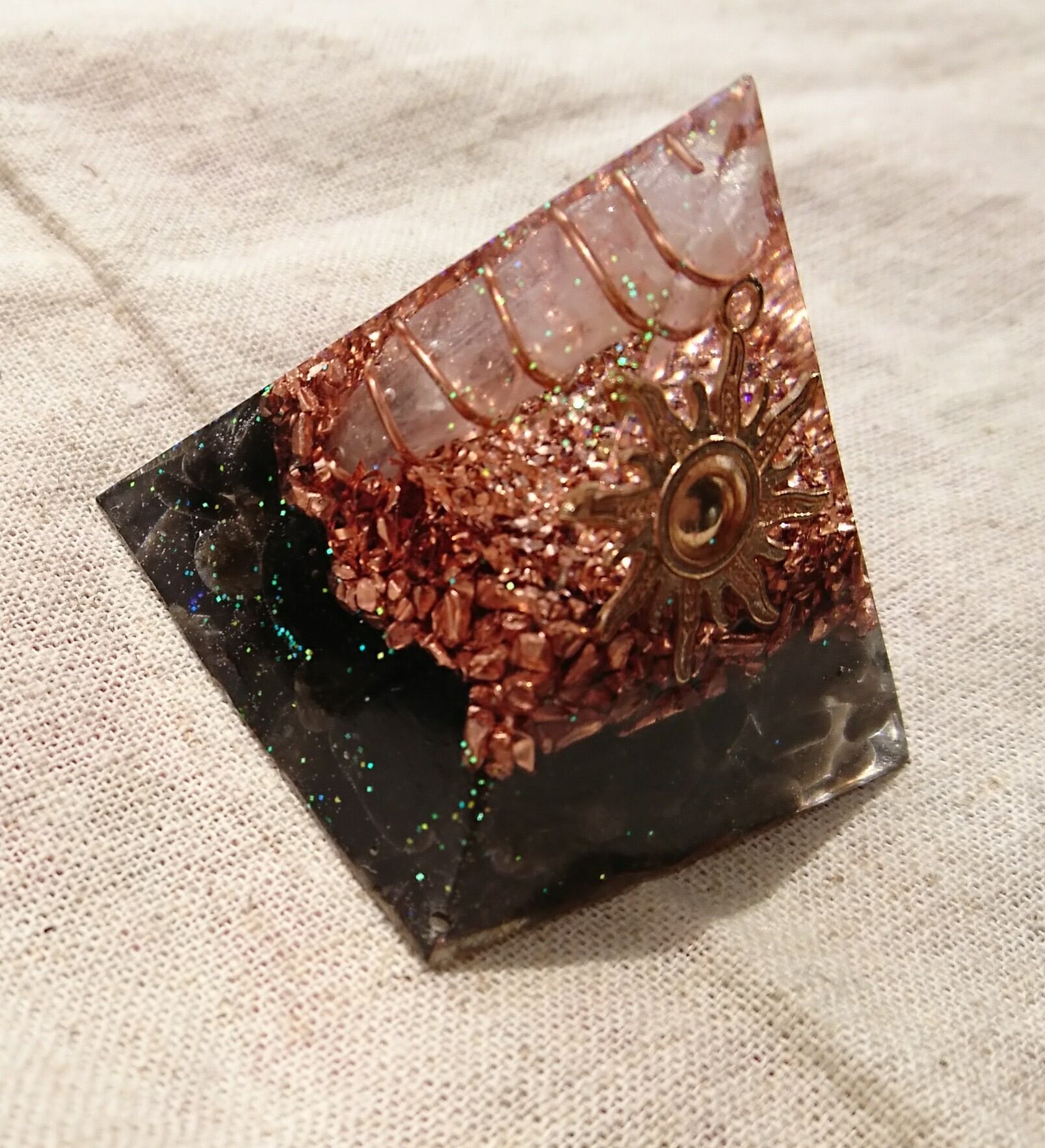 水晶、銅、樹脂の3つを組み合わせて作っています。