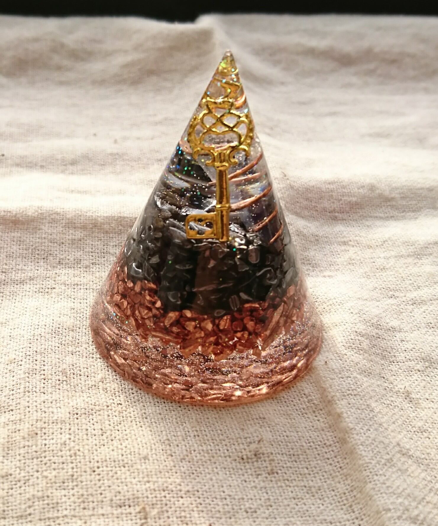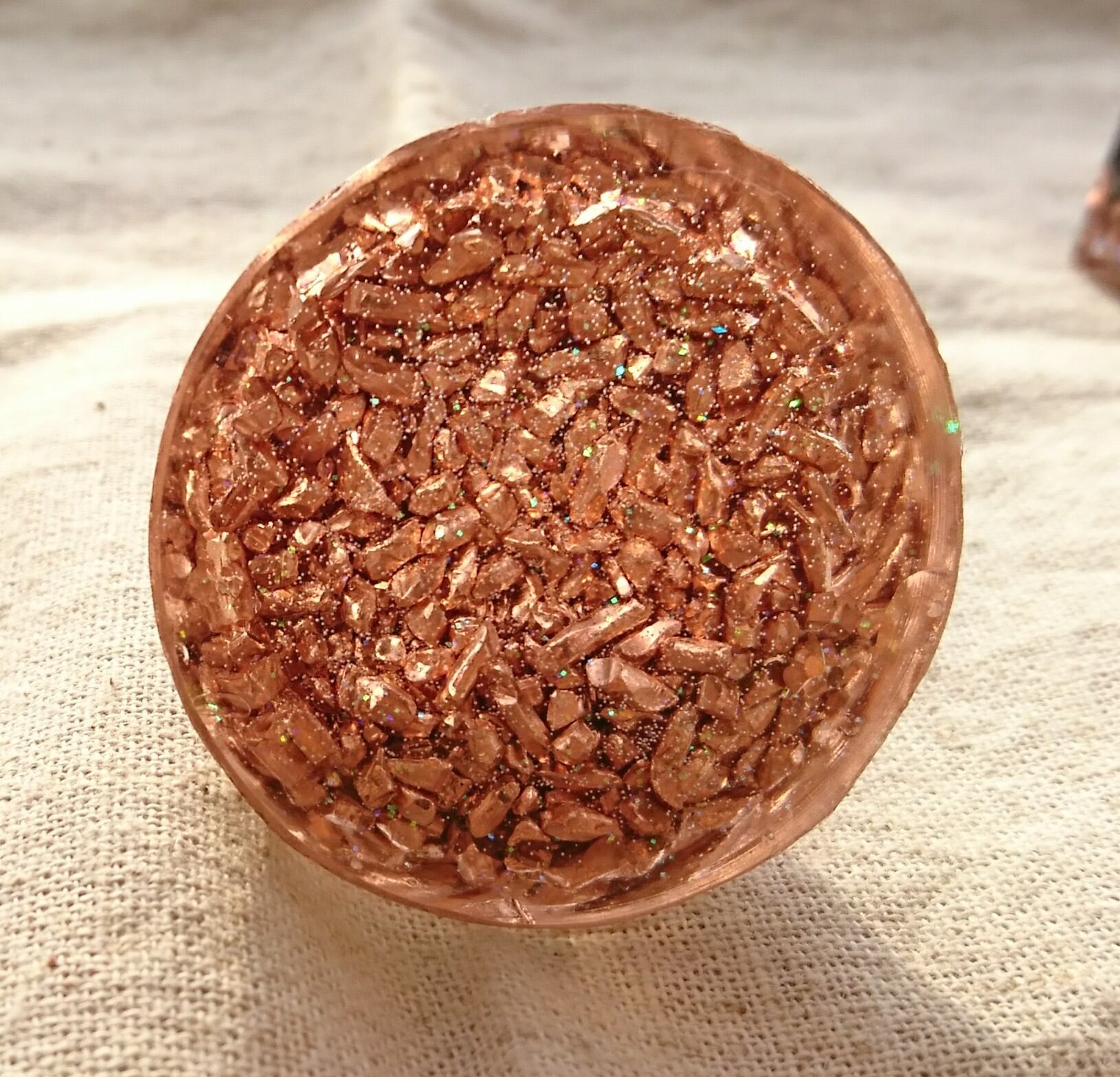 水晶、銅、樹脂の3つを組み合わせて作っています。