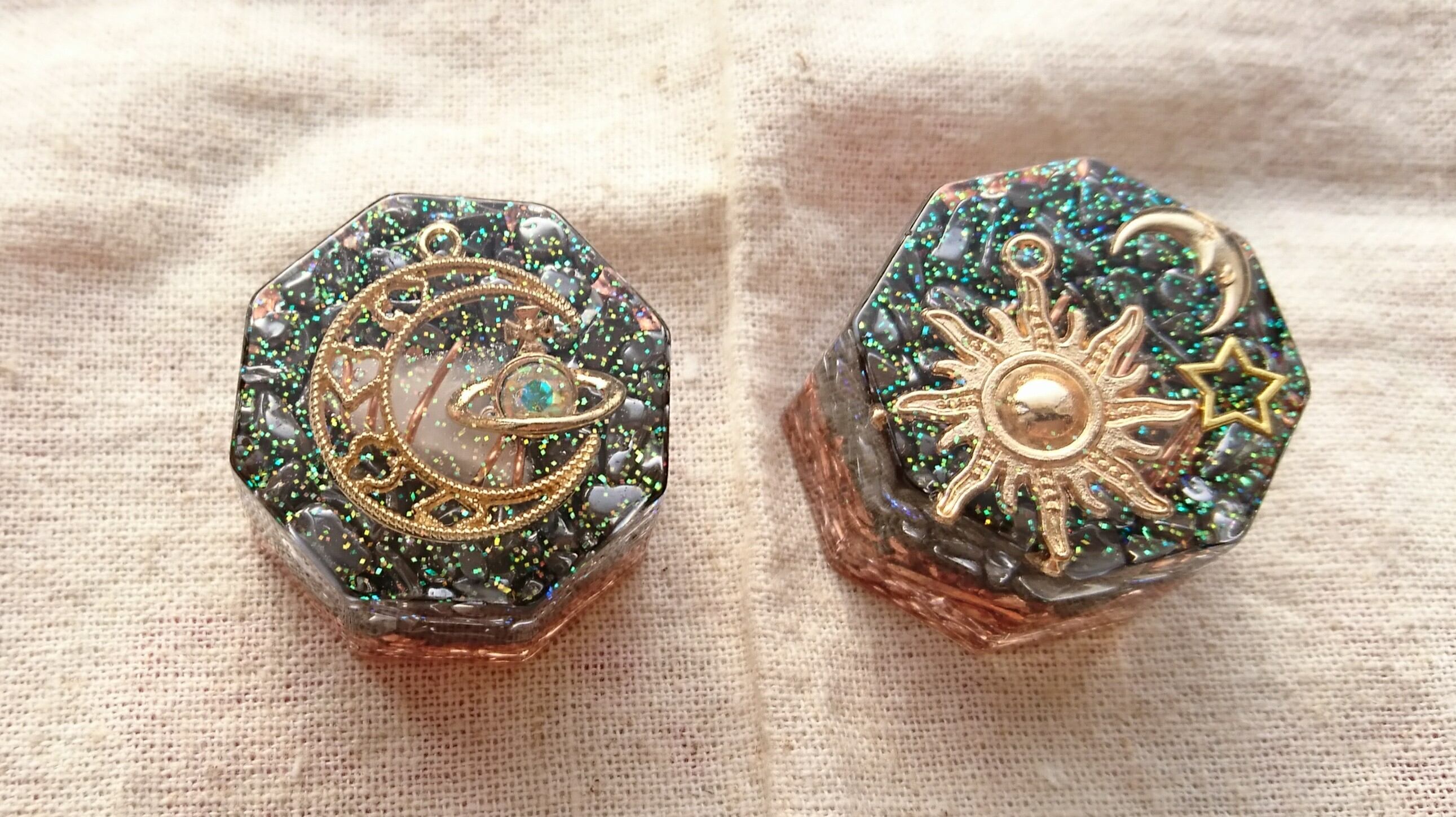 水晶、銅、樹脂の3つを組み合わせて作っています。