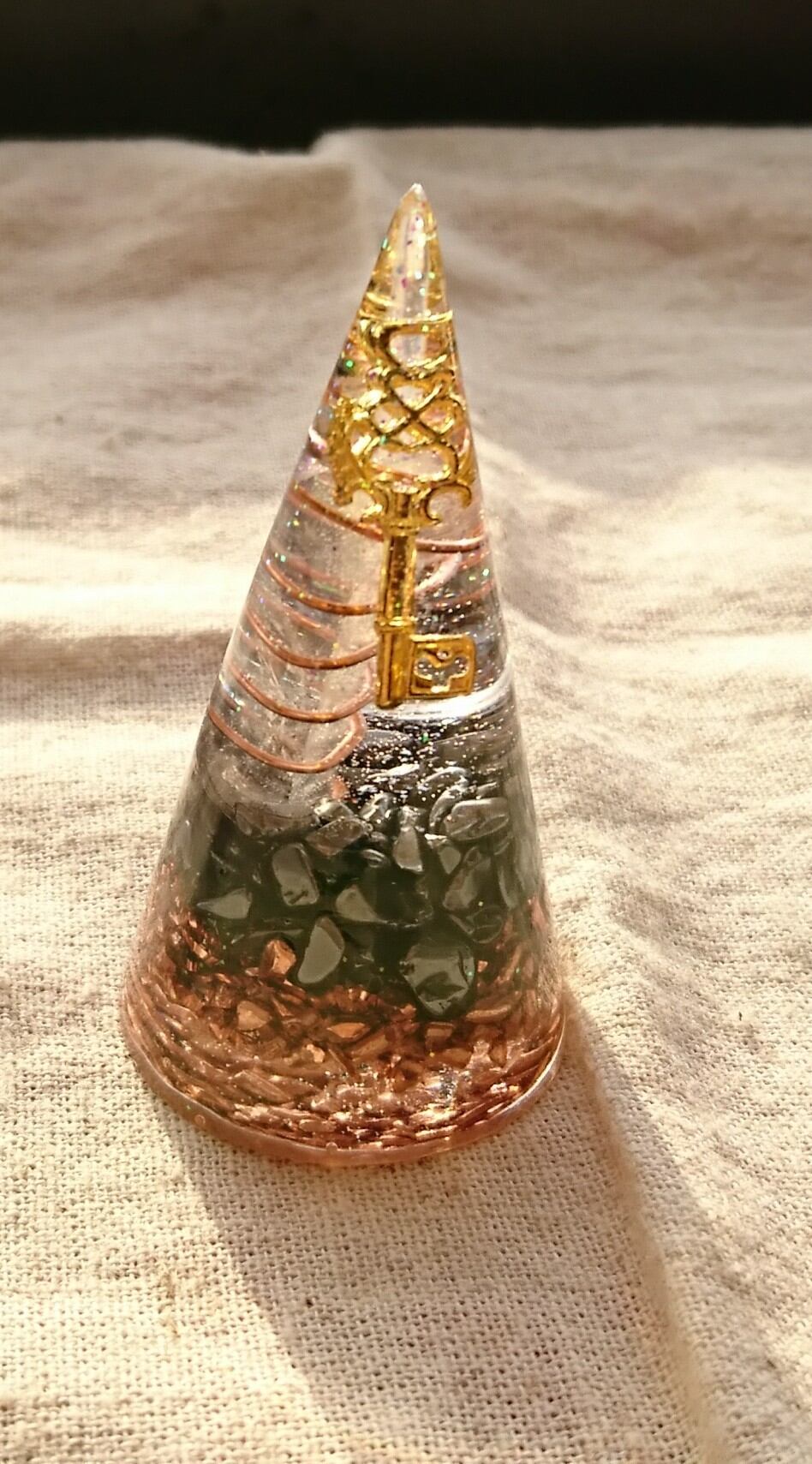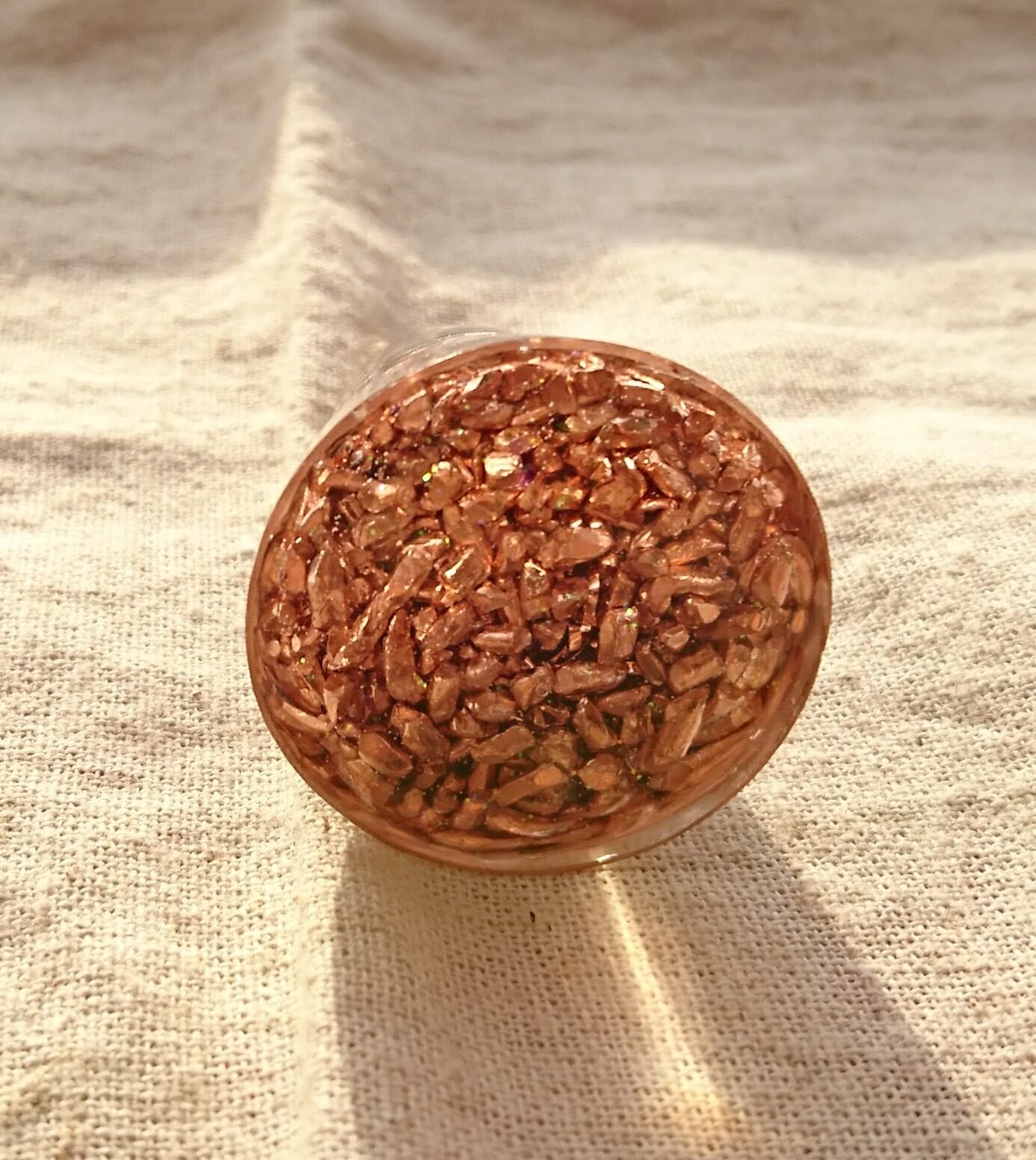水晶、銅、樹脂の3つを組み合わせて作っています。