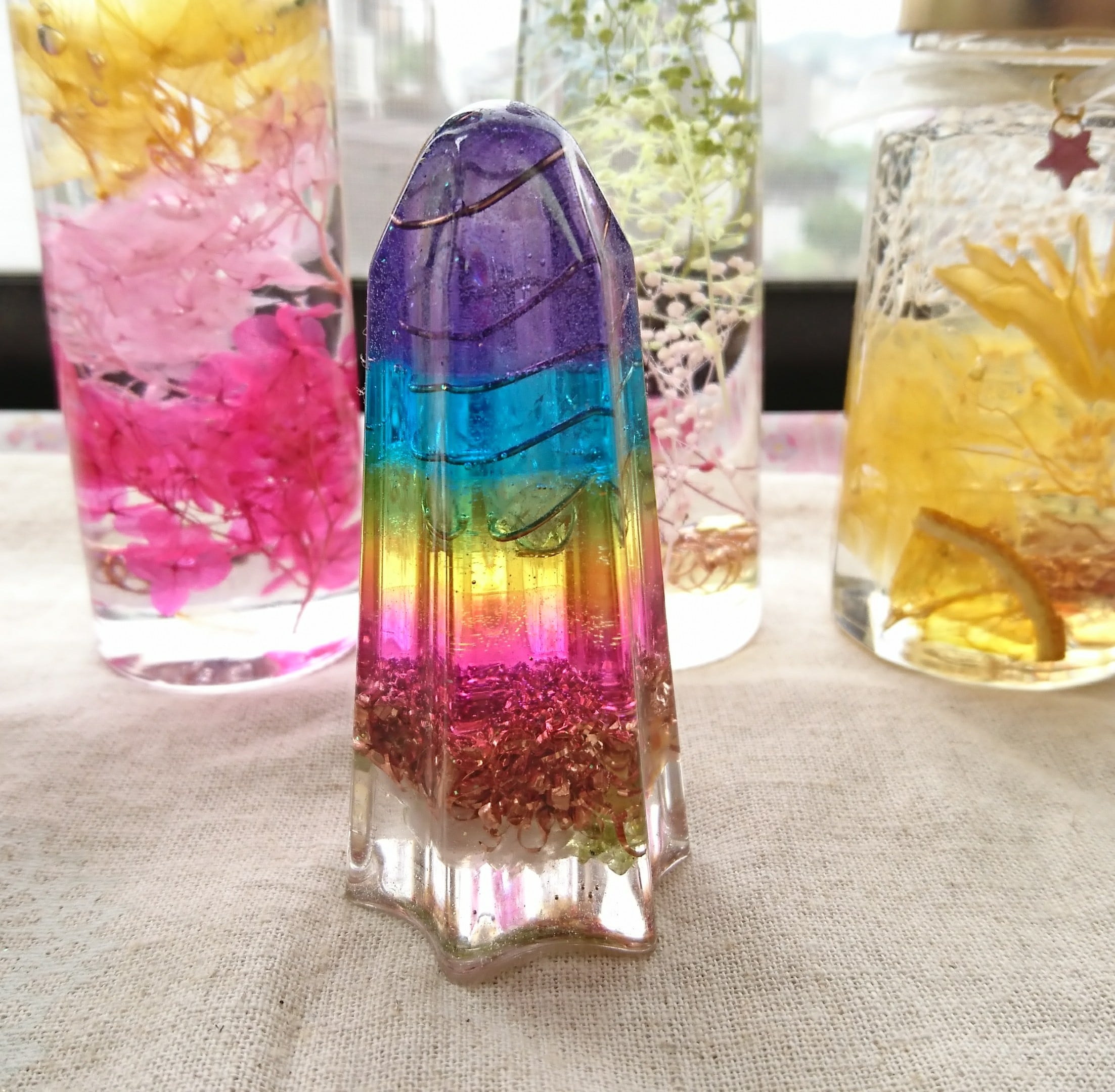水晶、銅、樹脂の3つを組み合わせて作っています。