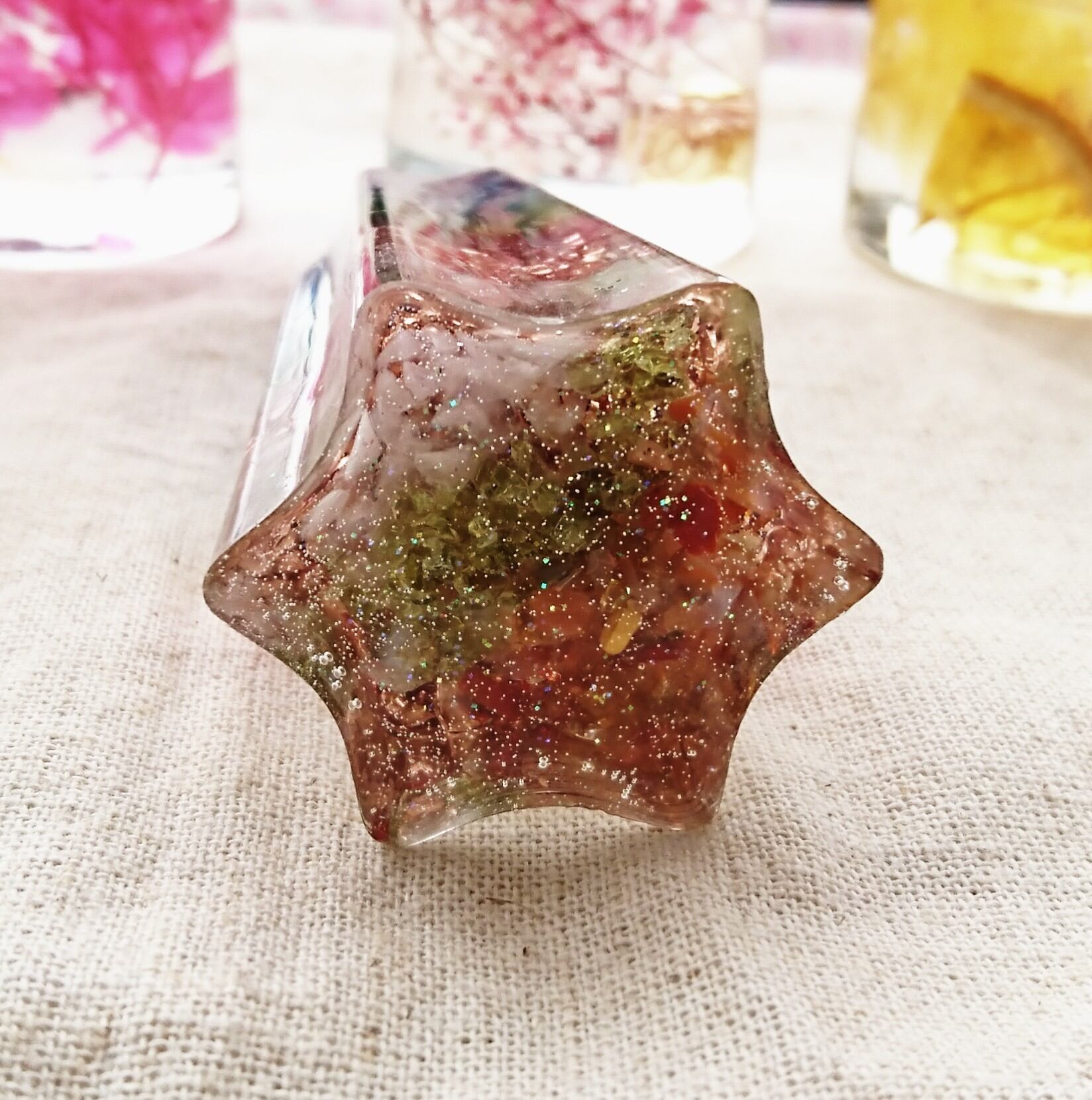 (ローズクォーツ、カーネリアン、ペリドット、シトリンを混ぜて入れています)