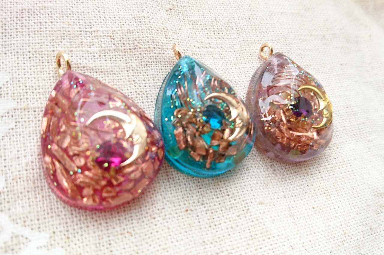水晶、銅、樹脂の3つを組み合わせて作っています。
