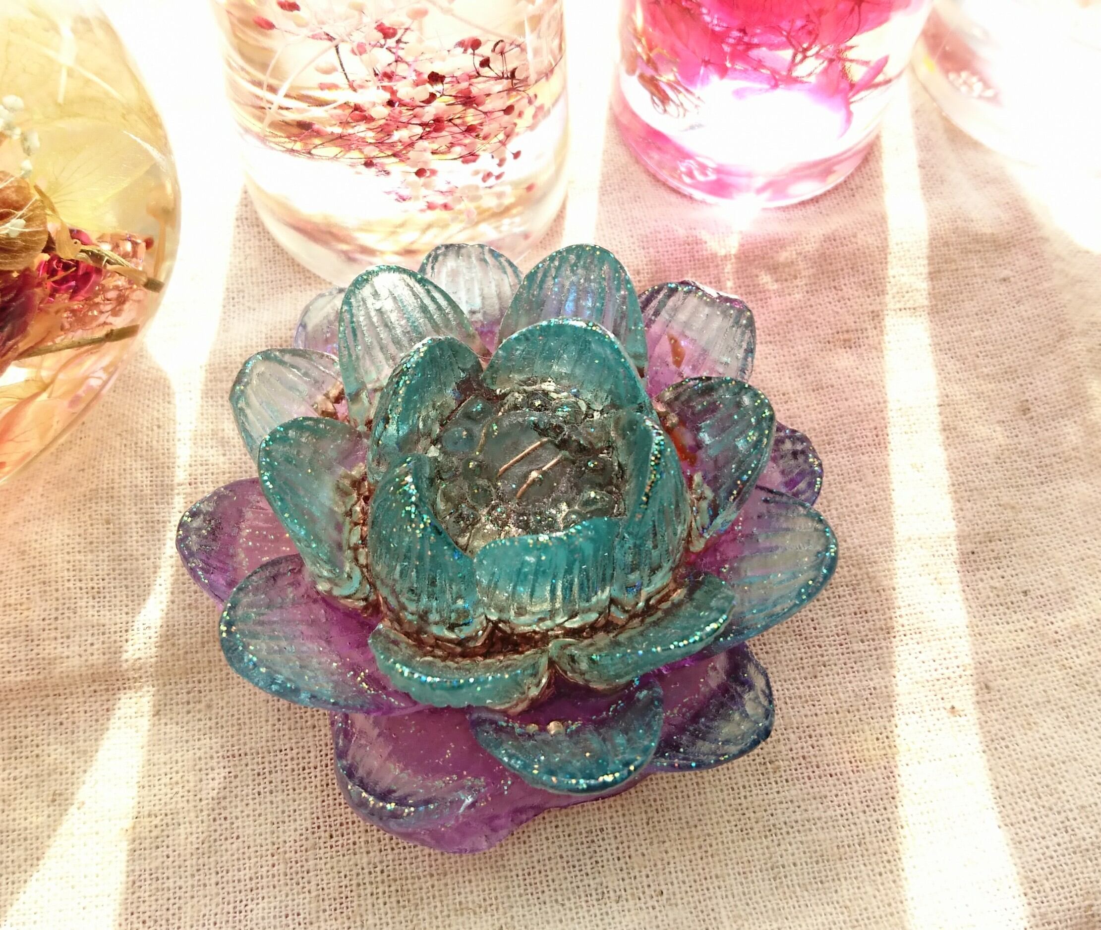 水晶、銅、樹脂の3つを組み合わせて作っています。
