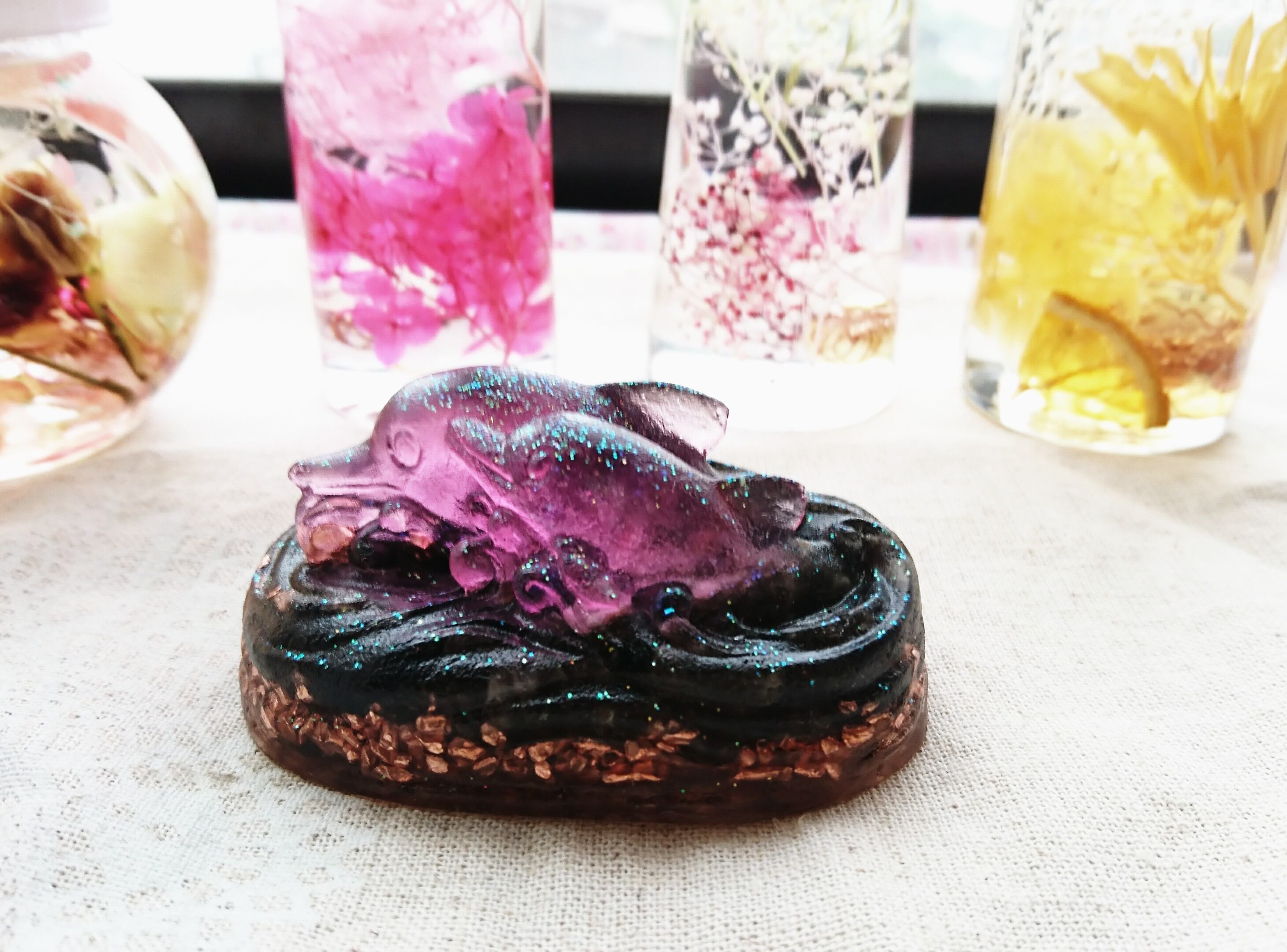 水晶、銅、樹脂の3つを組み合わせて作っています。